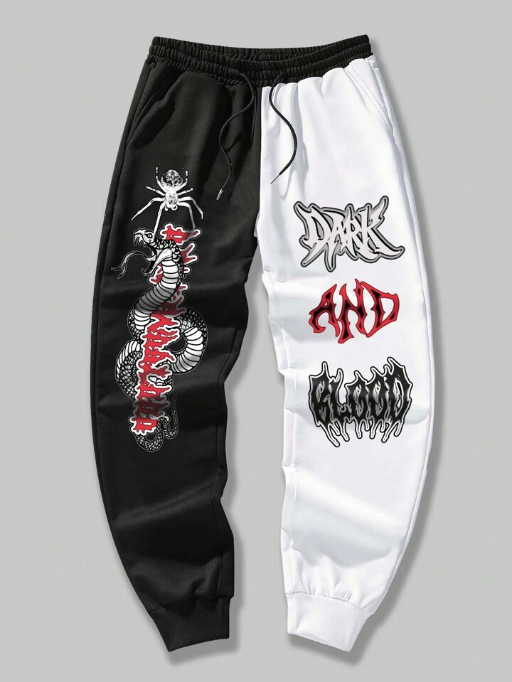 Street Life Men's Snake & Letter Printed Contrast Joggers