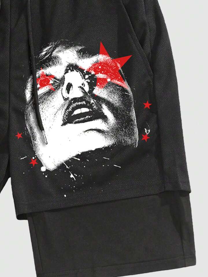 Anime Men's Solid Color Drawstring Casual Simple Basketball Shorts, Looks Like 2-In-1