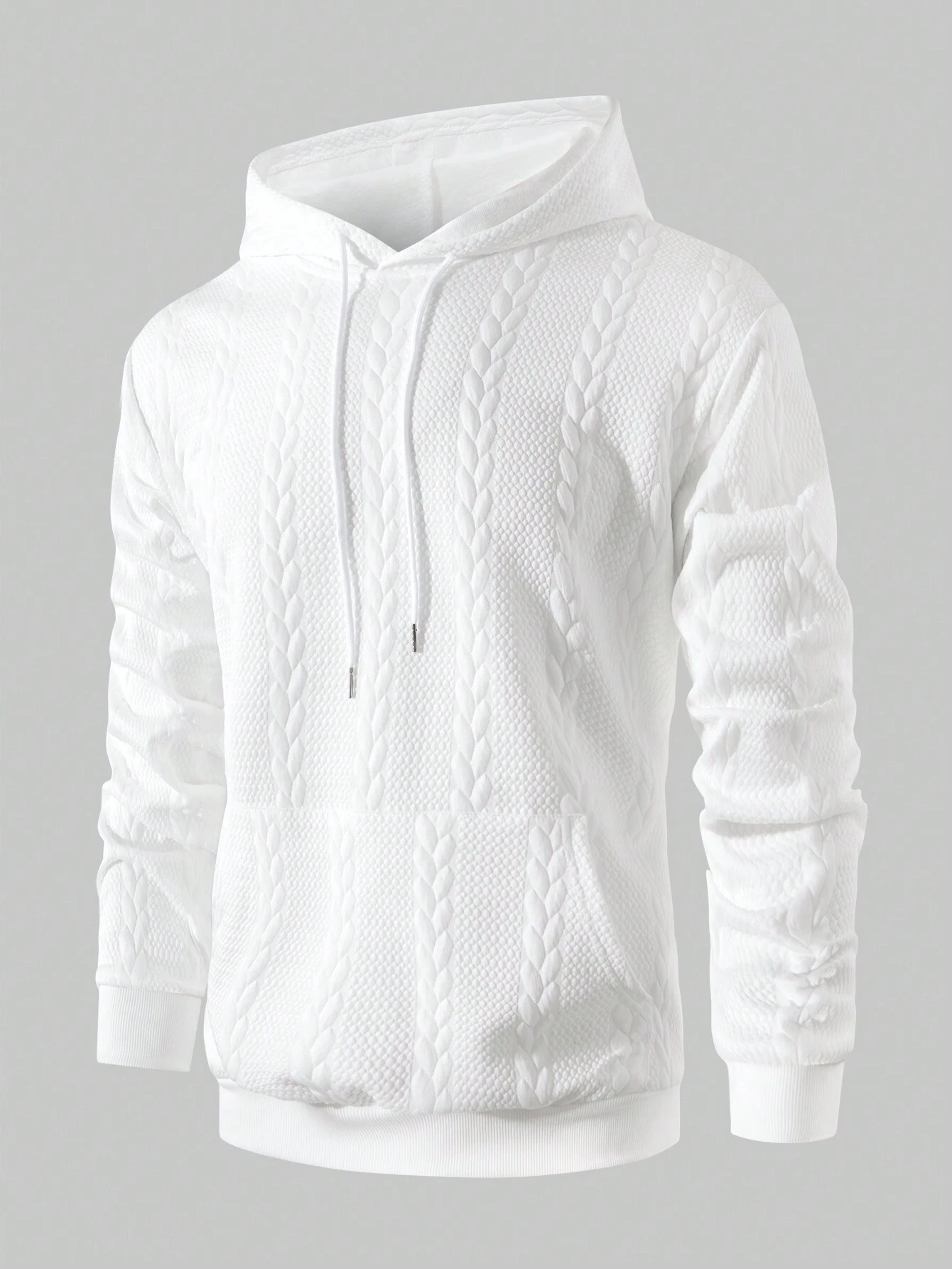 Street Life Men's Solid Color Long Sleeve Pocket White Hoodie, Casual Everyday Wear