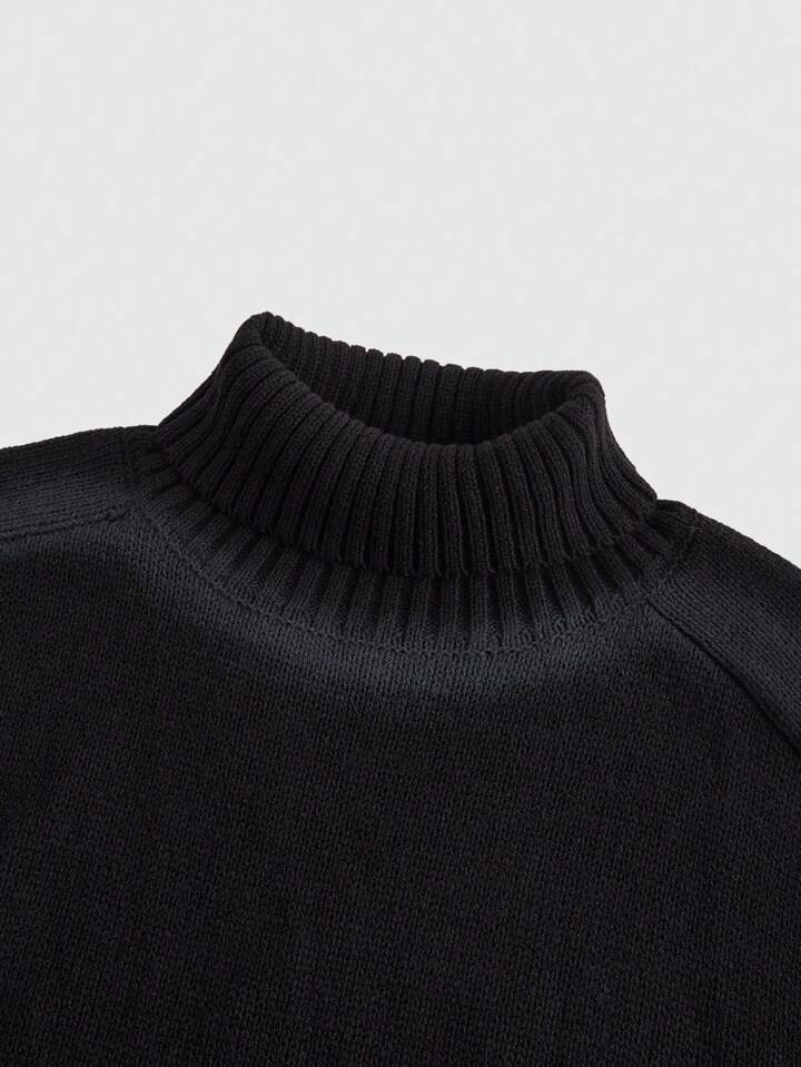 Street Life Men's Solid Color Turtleneck Long Sleeve Minimalist Sweater, Casual Daily Wear