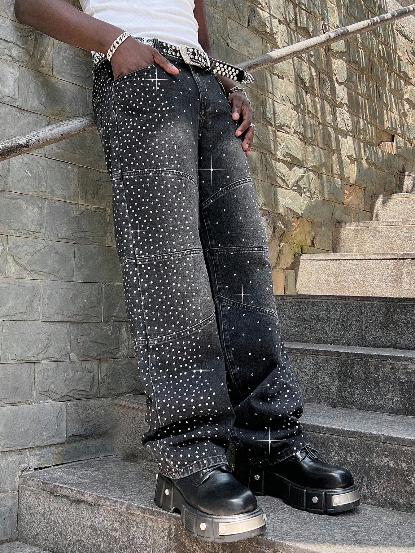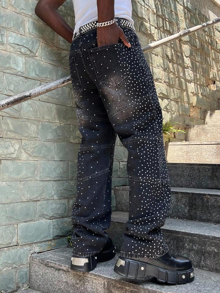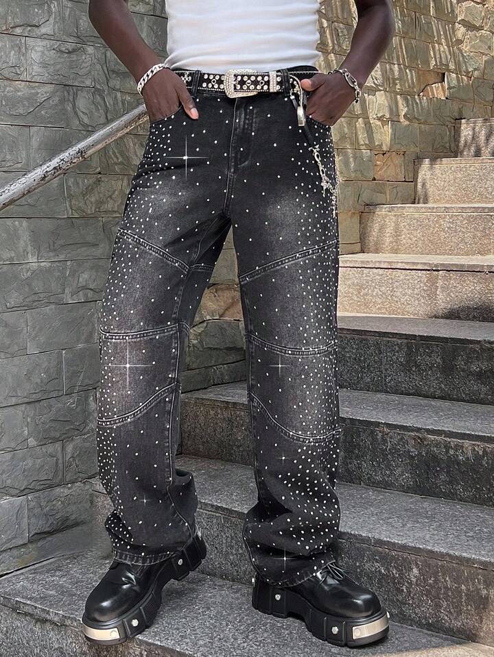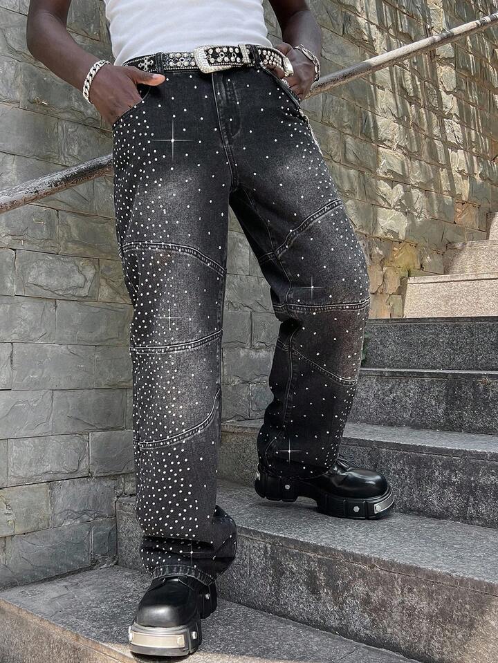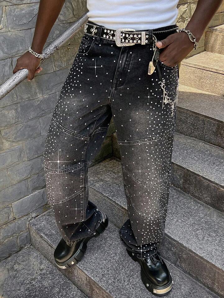 Street Life Men's Sparkling Diamond Loose Baggy Jeans