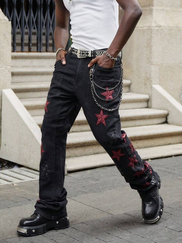 Street Life Men's Star Embroidered Layered Denim Jeans