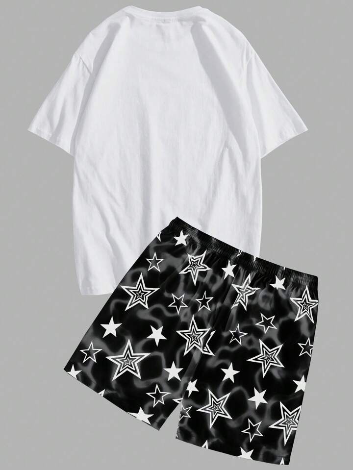 Street Life Men's Star Print Drop Shoulder T-Shirt And Shorts Set, School