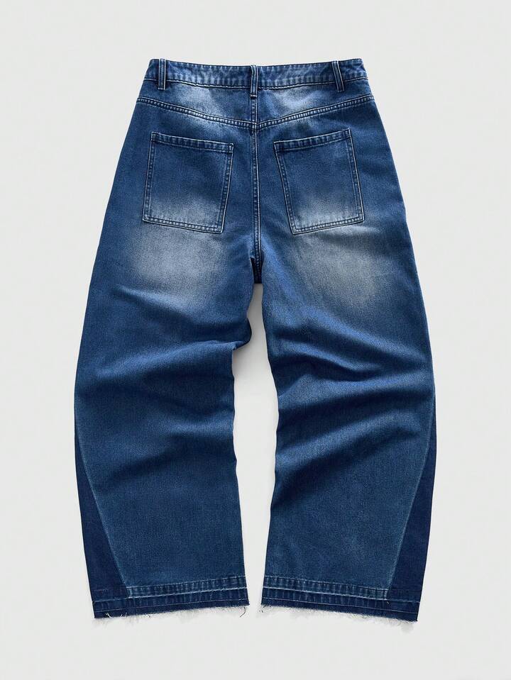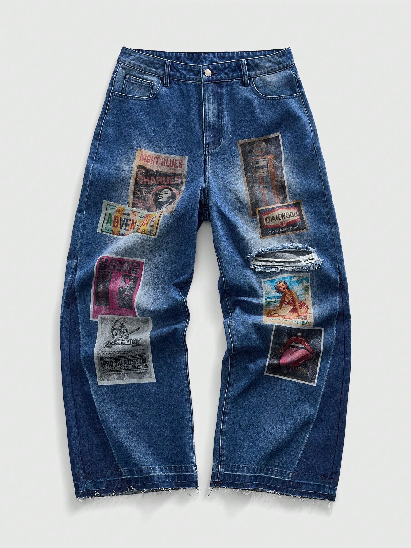 Street Life Men's Straight Leg Figure Print Distressed Wide Leg Jeans