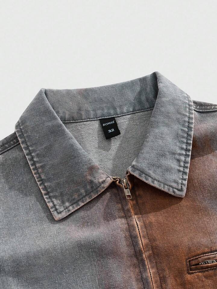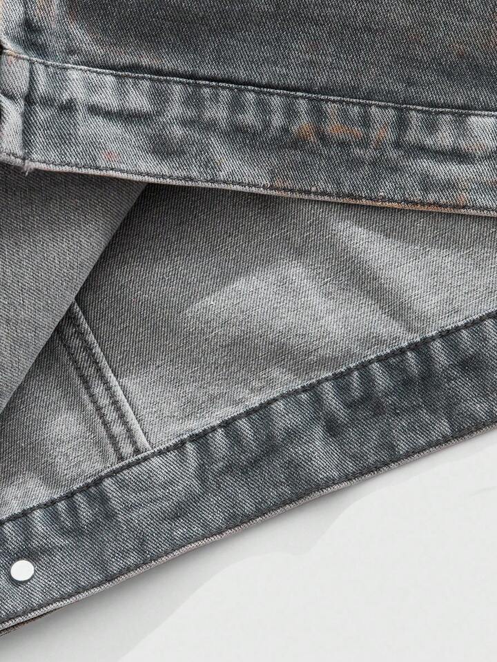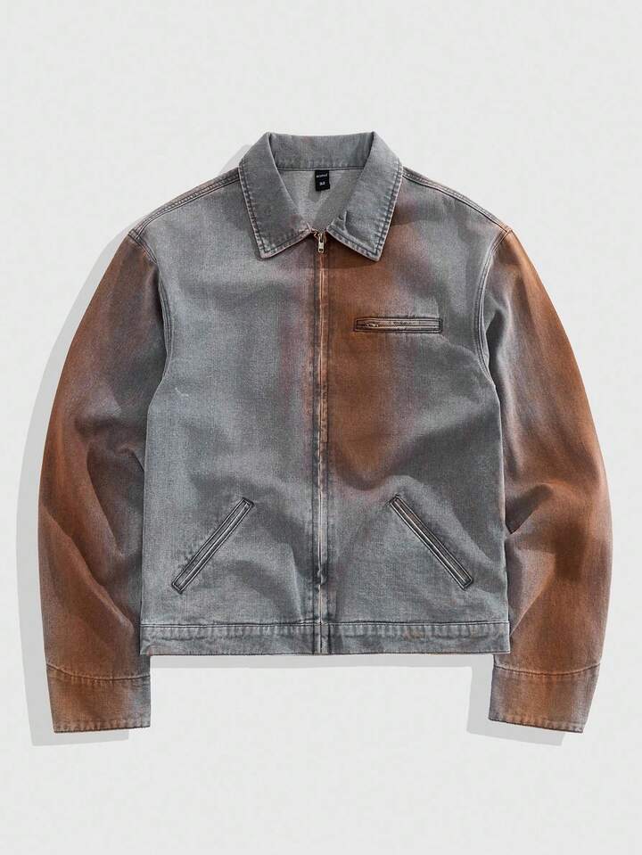 Street Life Men's Street Fashion Punk Casual Zip-Up Denim Jacket With Spray Dye