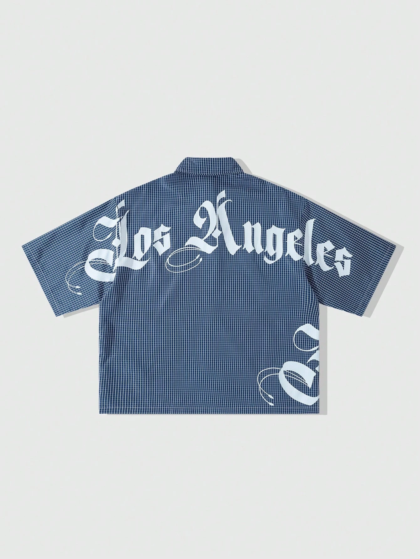 Men's Street Life Letter Printed Boxy Fit Plaid Short Sleeve Open Casual Shirt For Summer