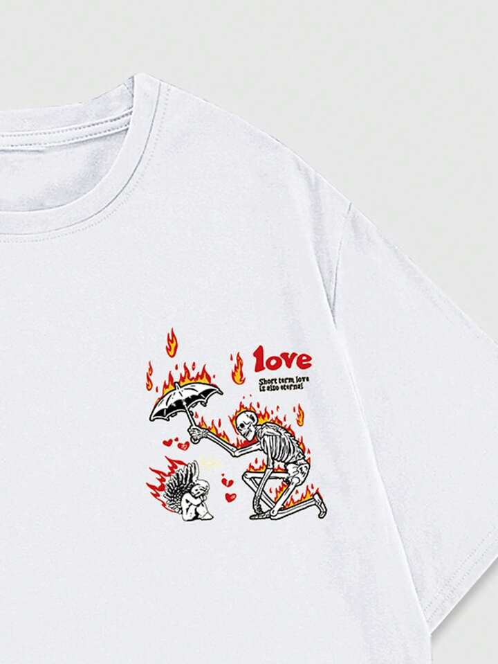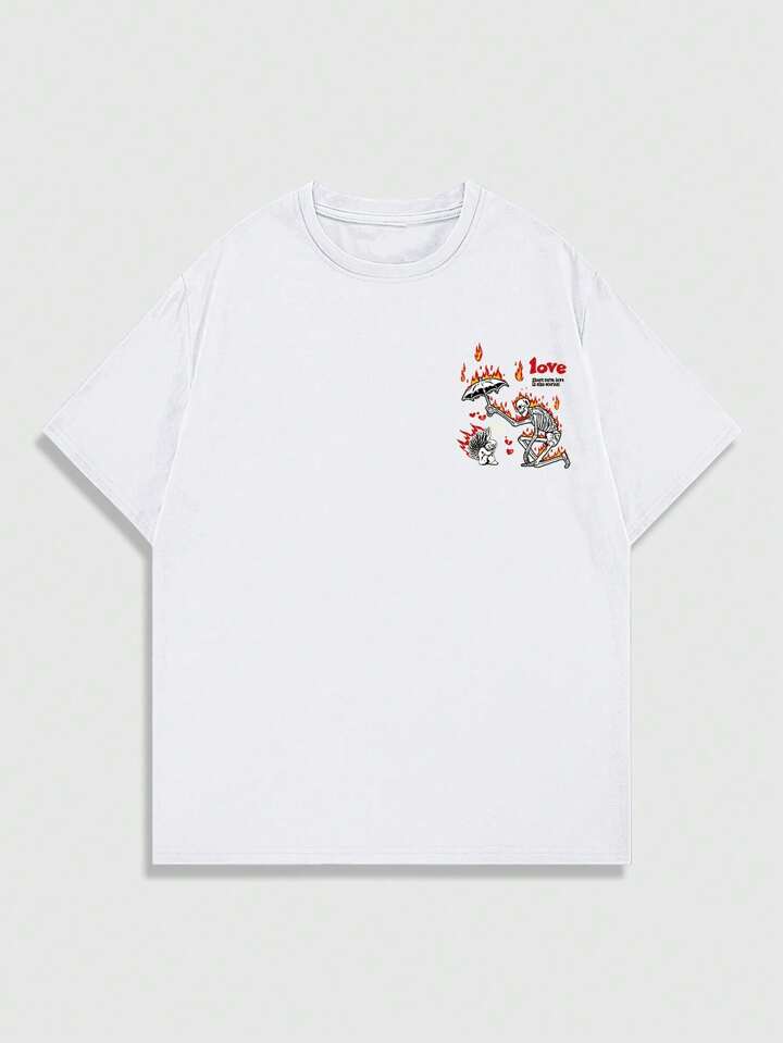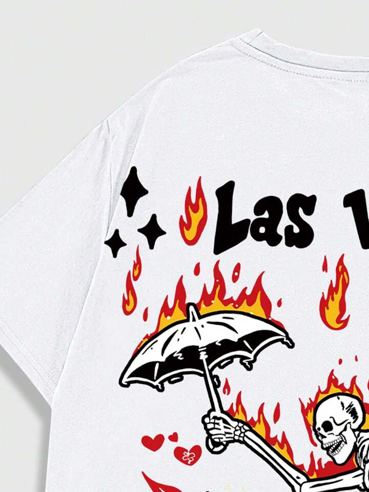 Street Life Men's Street Style Funny Print Short Sleeve T-Shirt, Suitable For Daily Wear In Spring And Summer
