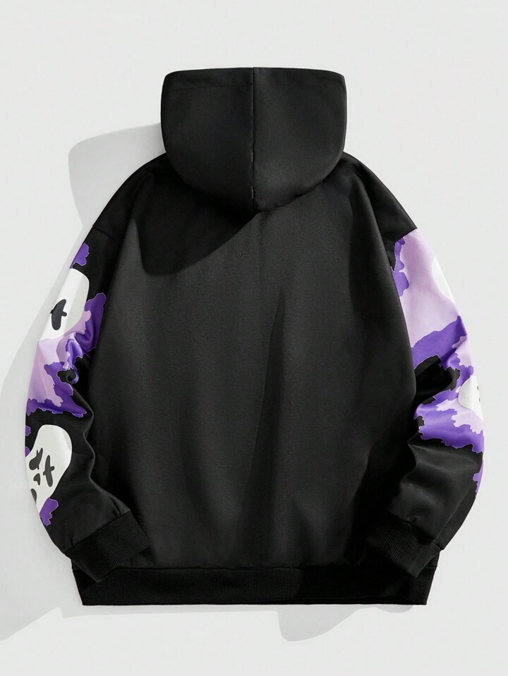 Street Life Men's Street Style Reflective Skull & Spider Web Print Hooded Sweatshirt, Spring/Autumn