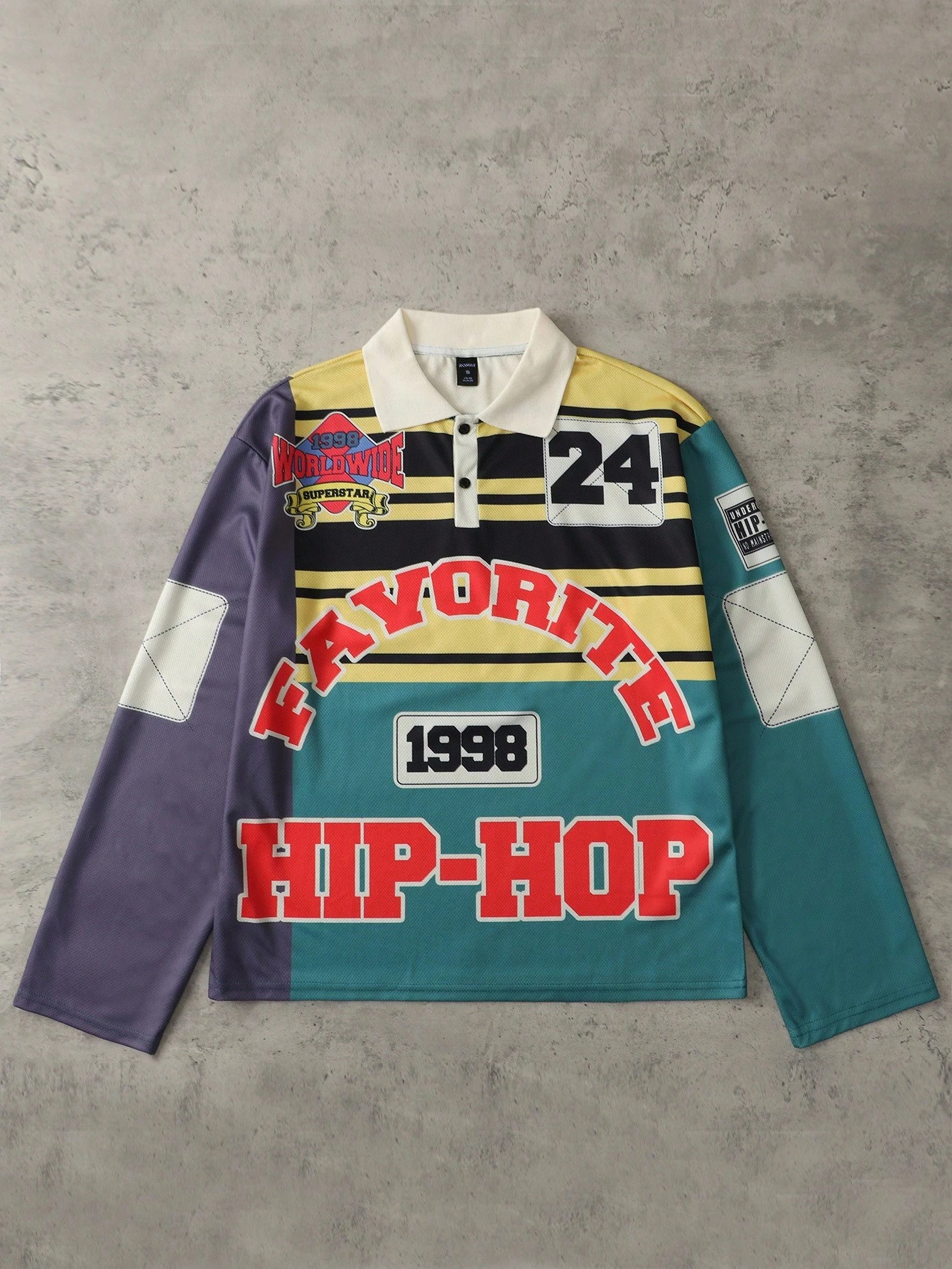 Street Life Men's Striped & Letter Print Color Block Long Sleeve Polo Shirt