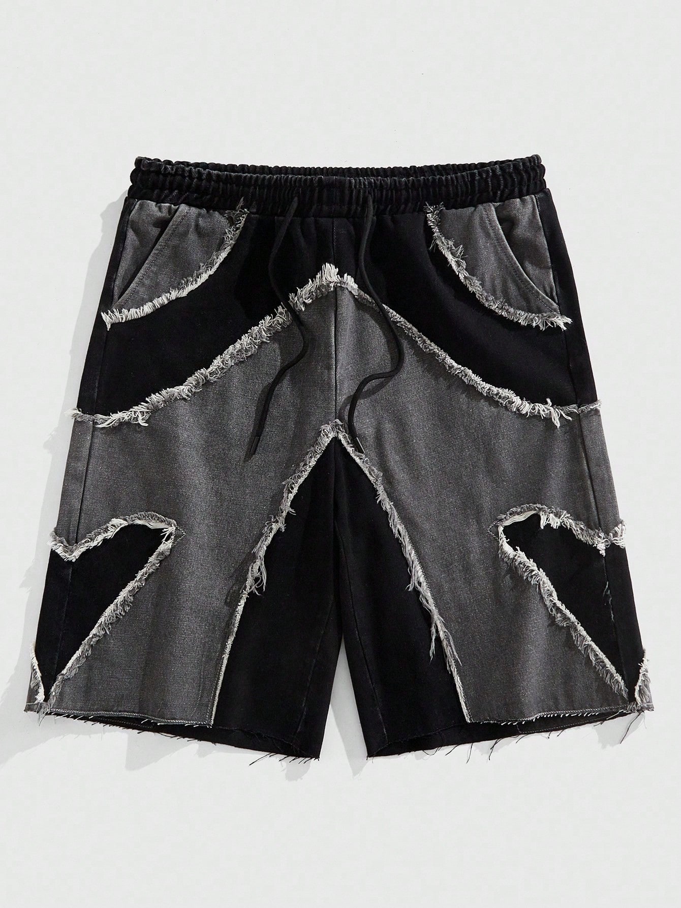 Street Life Men's Summer Casual Contrast Color Patchwork Frayed Hem Denim Shorts