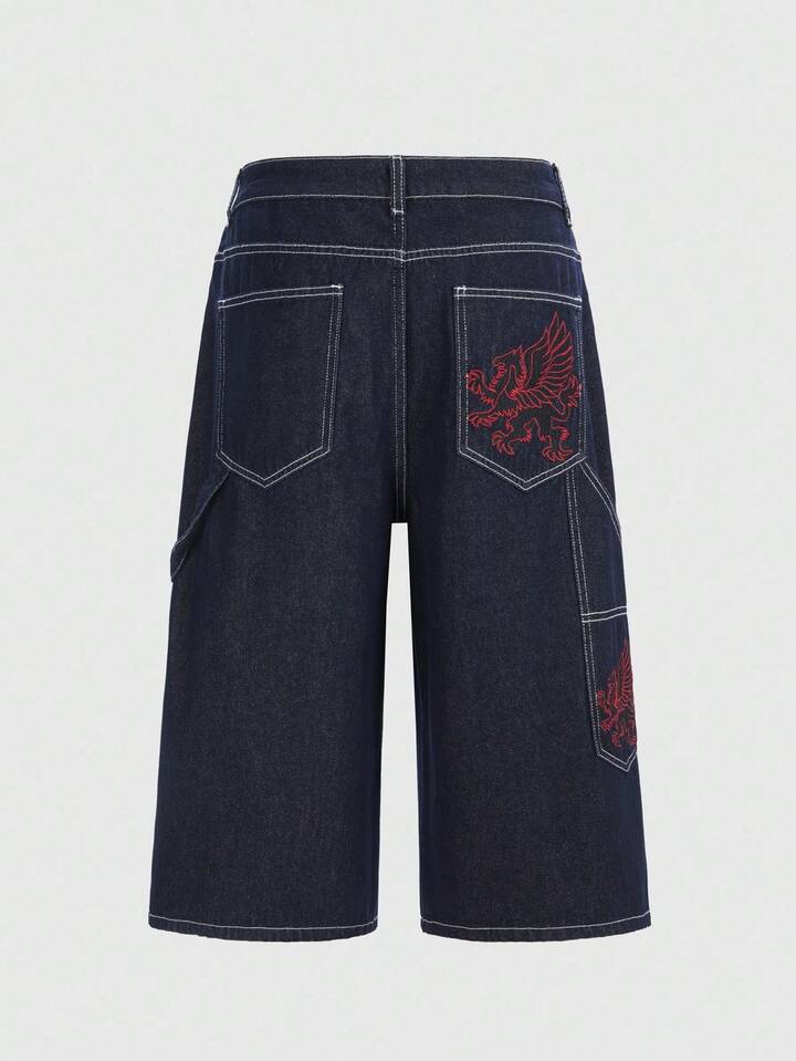 Street Life Men's Summer Casual Washed Denim Embroidered Shorts