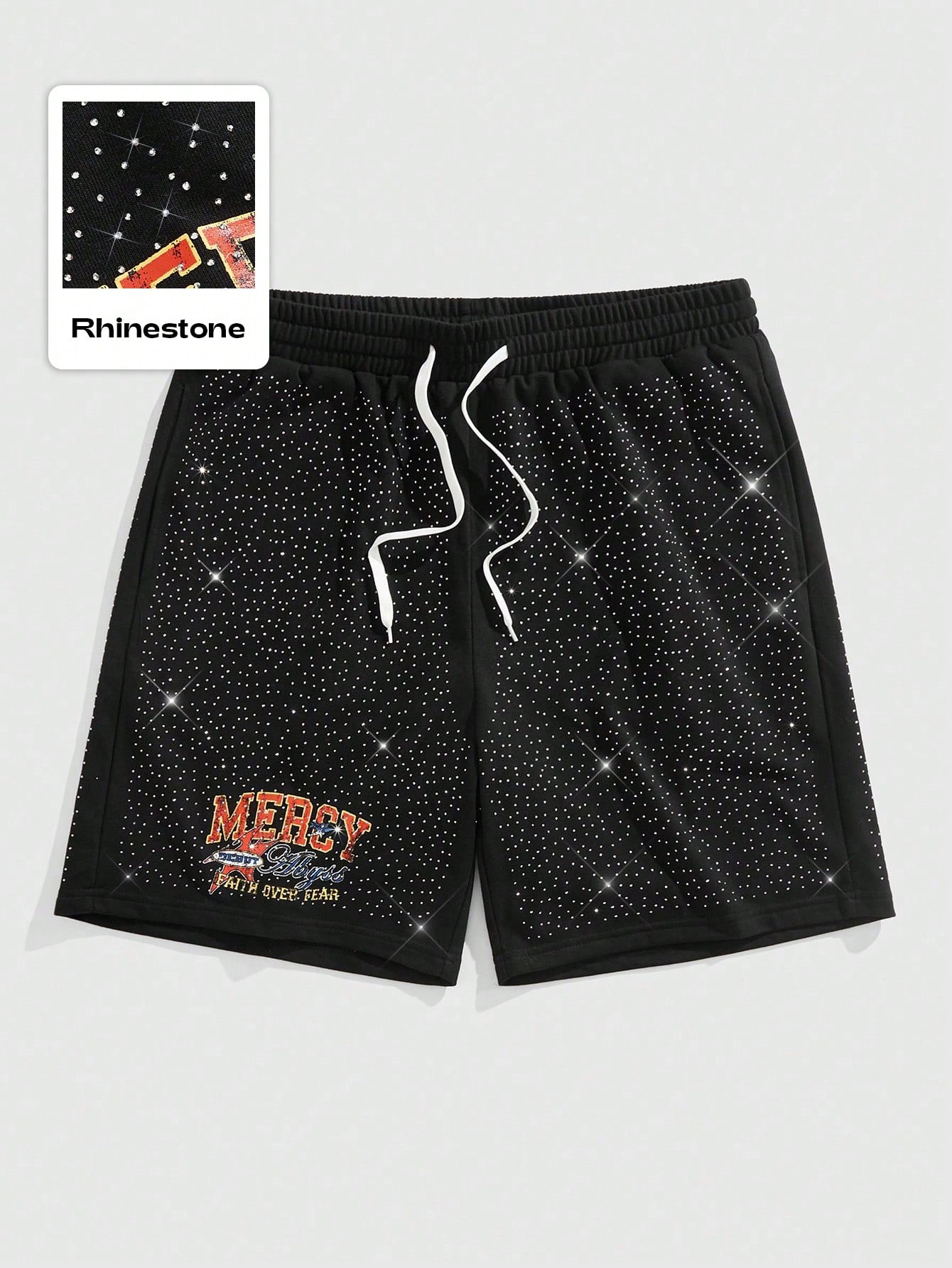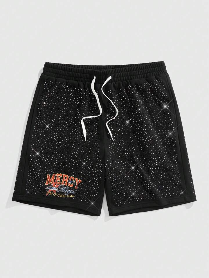 Street Life Men's Summer Fashion Rhinestone Drawstring Waist Shorts