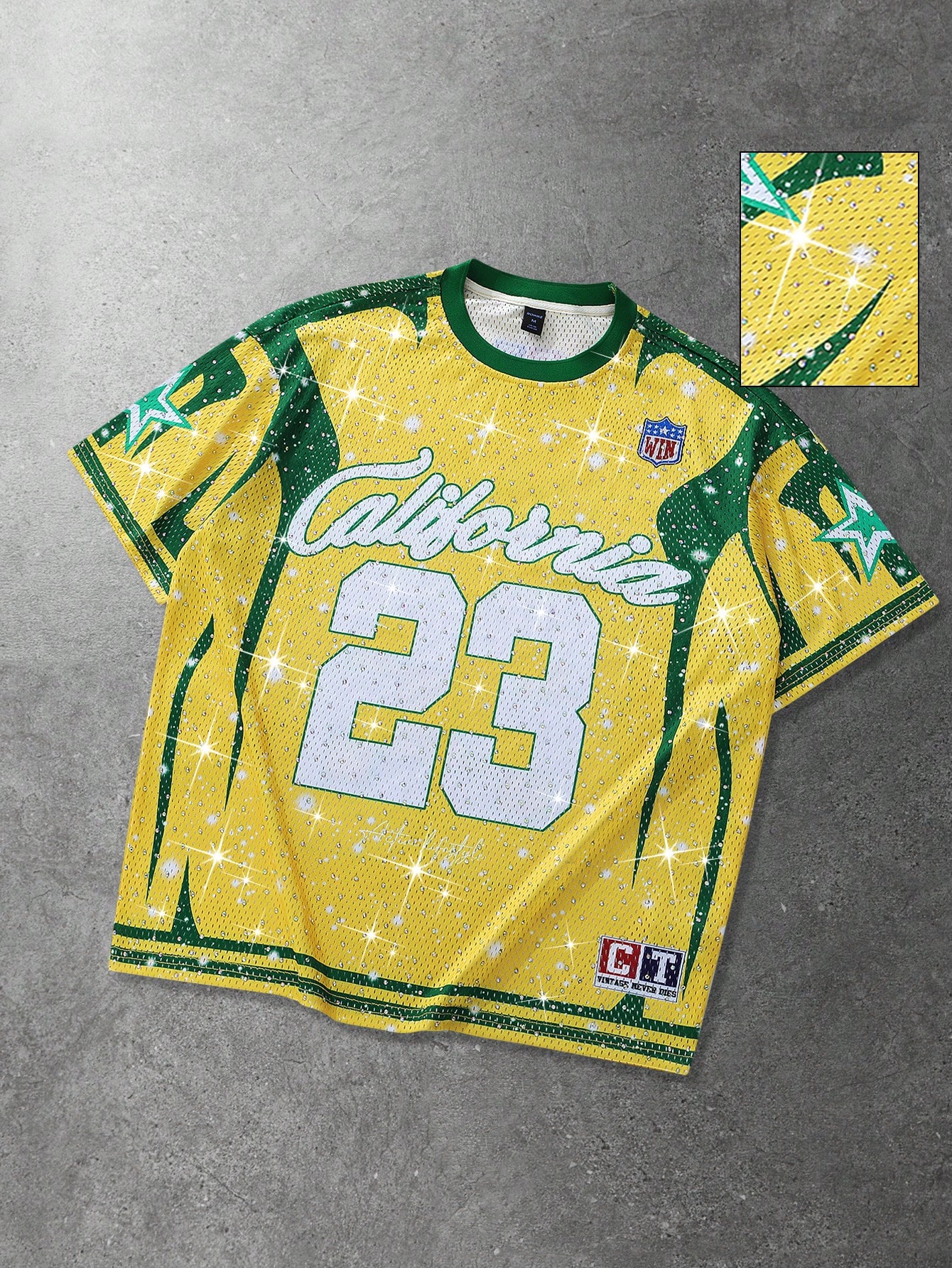 Street Life Men's Summer New Design Rhinestone Printed Street American Sports Style Short Sleeve T-Shirt, Featuring A Vibrant Pink Sports Tank Top With Bold White Cursive "California" Text And Prominent White "23" Numeric Design, Along With Star Pattern