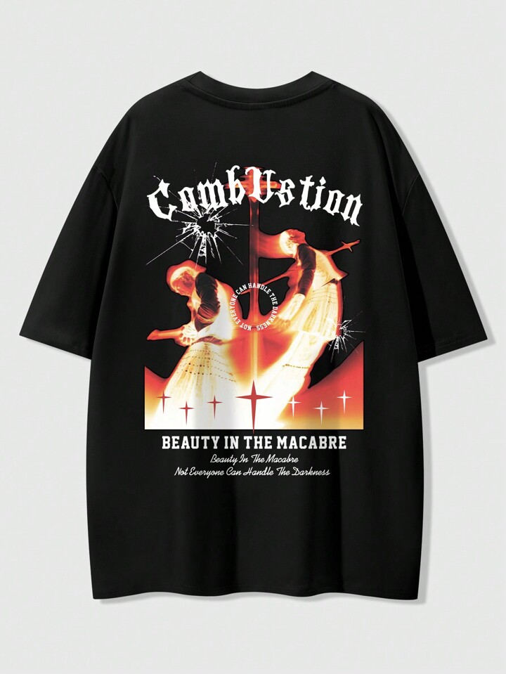 Street Life Men's Summer Short Sleeve Loose Fit Casual T-Shirt With Printed Slogan 'reborn From Fire'