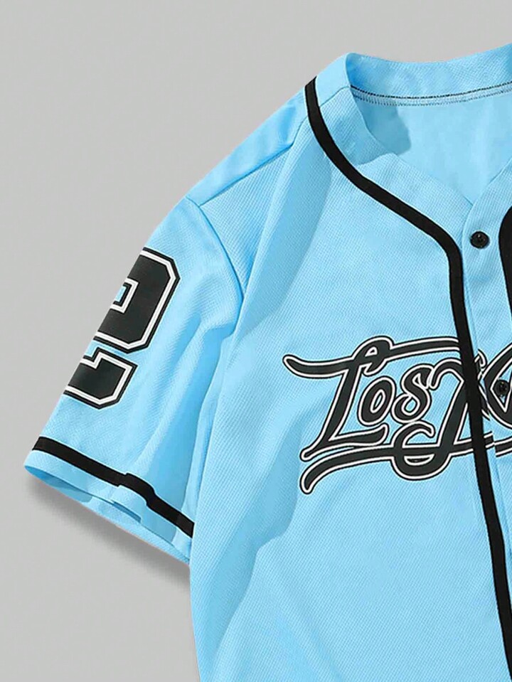 Street Life Men's Text Printed Short-Sleeved Shirt & Shorts Casual Two-Piece Set, School