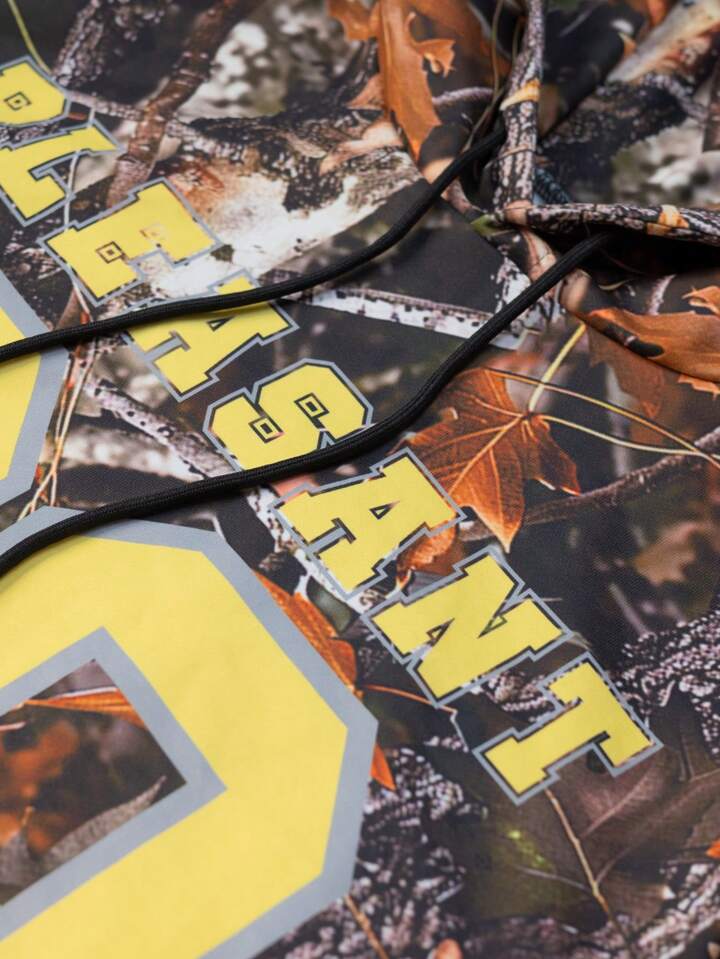 Street Life Men's Tree Branch & Camouflage Allover Print Loose Hoodie, Street Style
