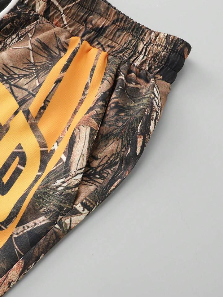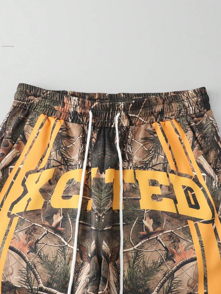 Street Life Men's Tree Branch & Letter Print Drawstring Waist Casual Loose Pants, Street Style