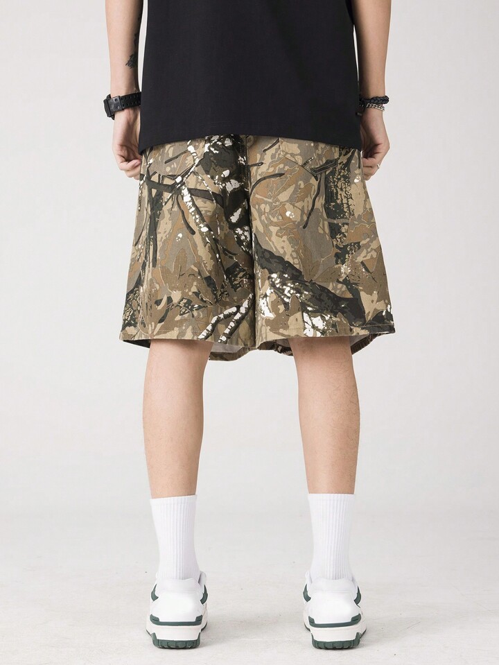 Street Life Men's Tree Print Denim Shorts For Daily Wear In Spring And Summer