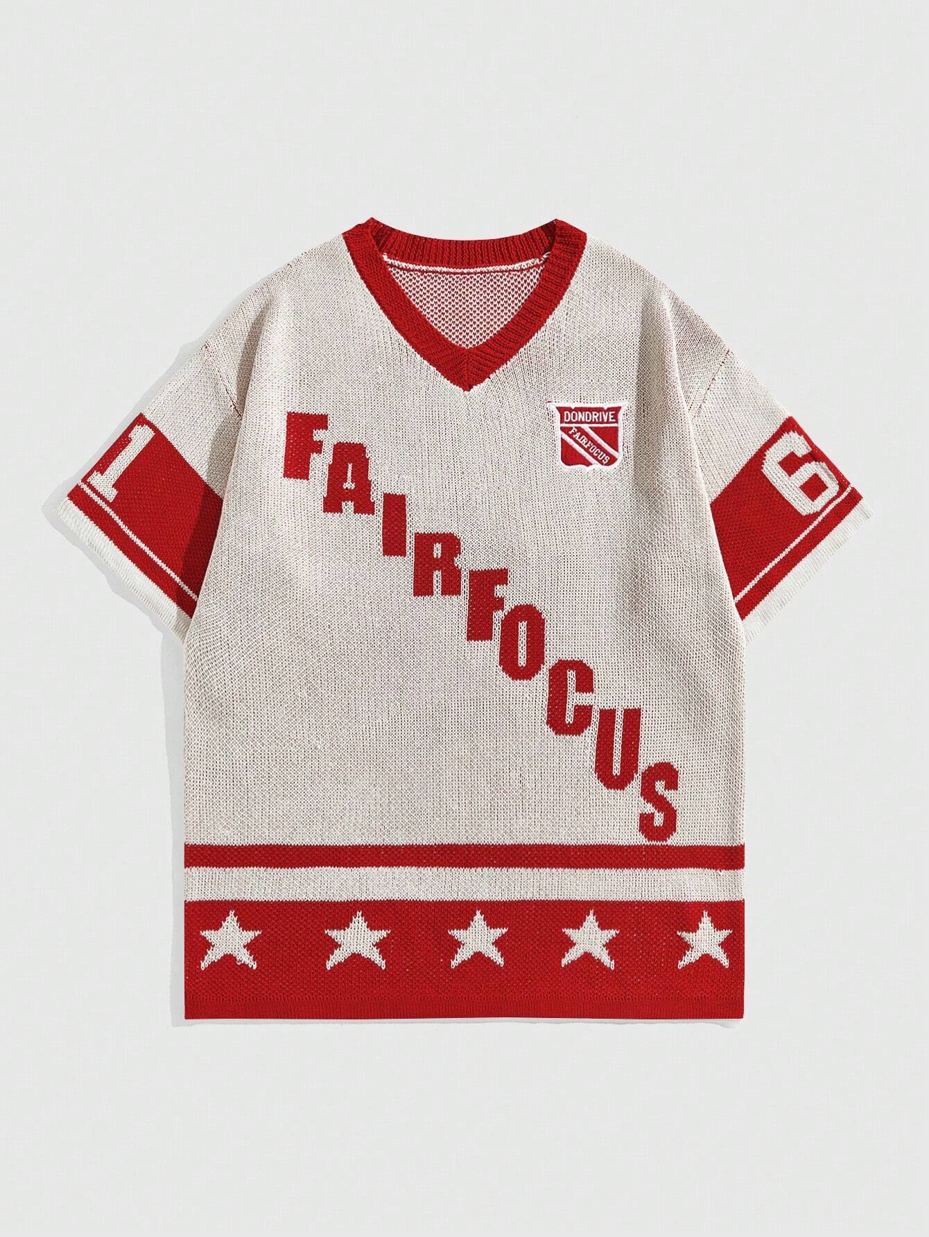 Street Life Men's V-Neck Color Block Knitted Short Sleeve T-Shirt, Streetwear