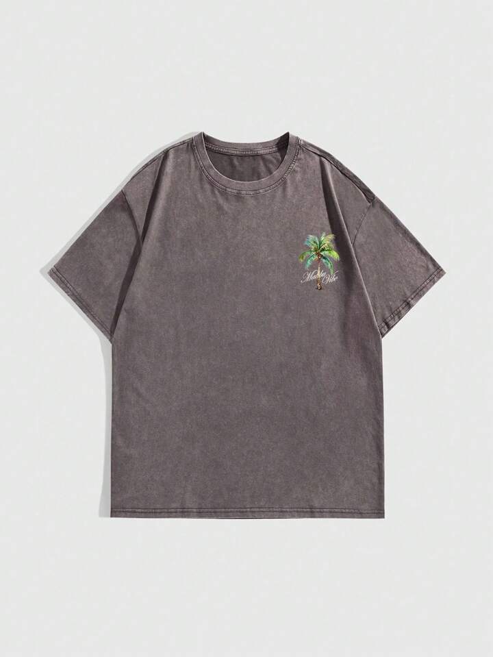 Street Life Men's Vintage Acid-Washed Holiday Short Sleeve T-Shirt, Daily Wear For Spring And Summer, School