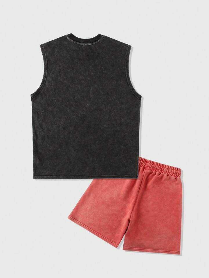 Street Life Men's Vintage Washed Letter & Car Print Tank Top And Shorts Set