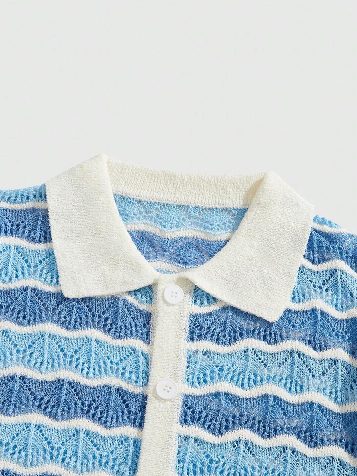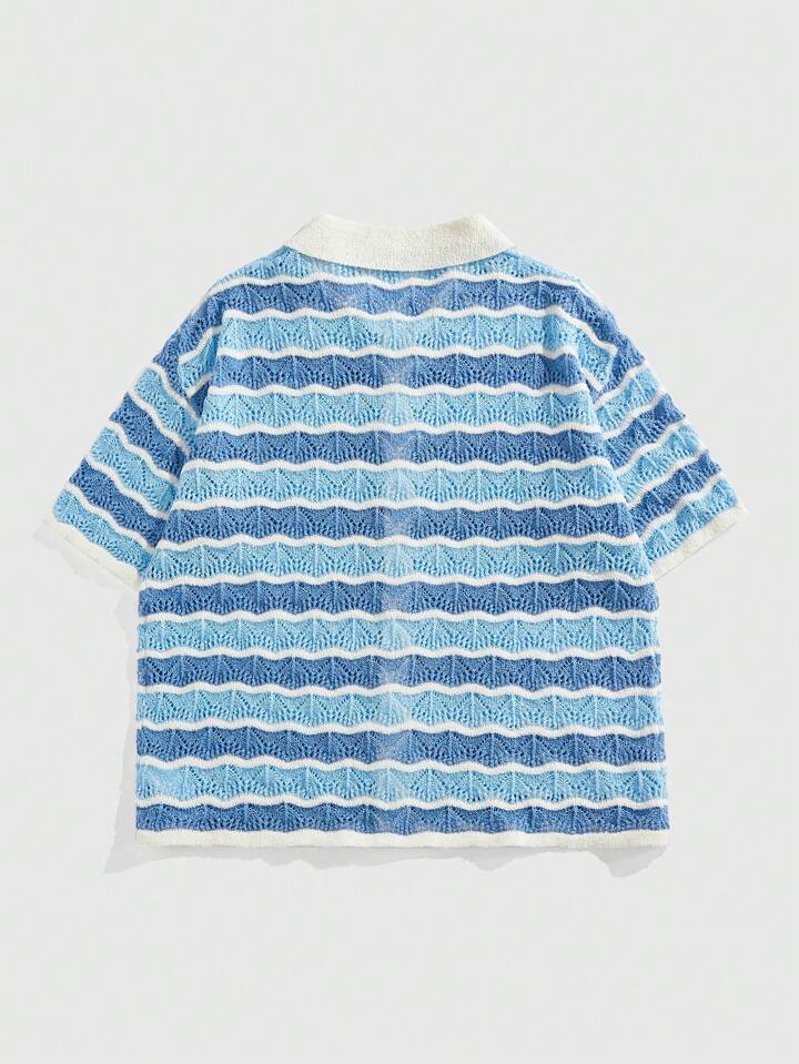 Street Life Preppy Men's Turn-Down Collar Wavy Pattern Cardigan