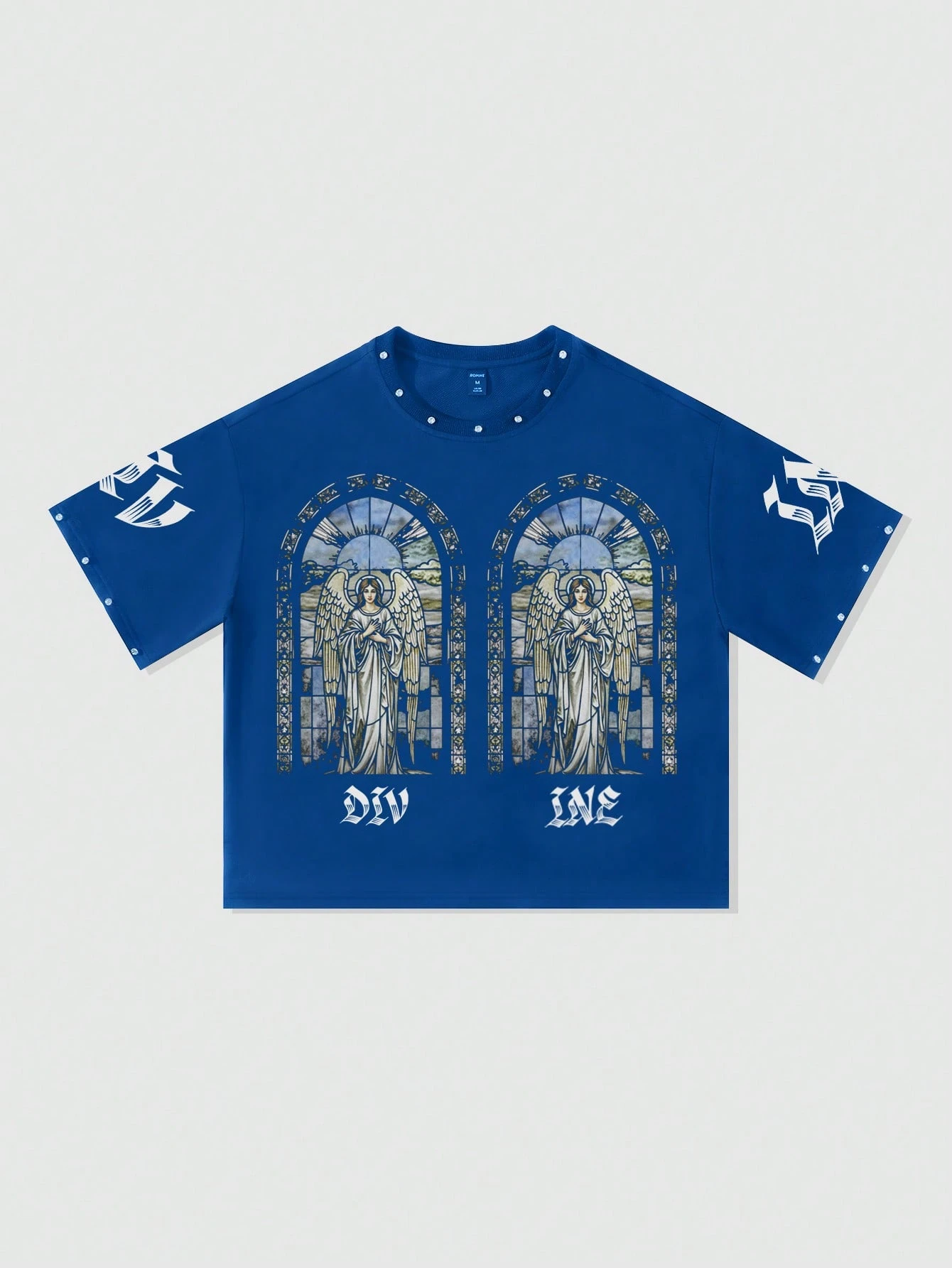 Street Life Religious Men's Rhinestone Print Loose Crop Top T-Shirt, 2000s Style