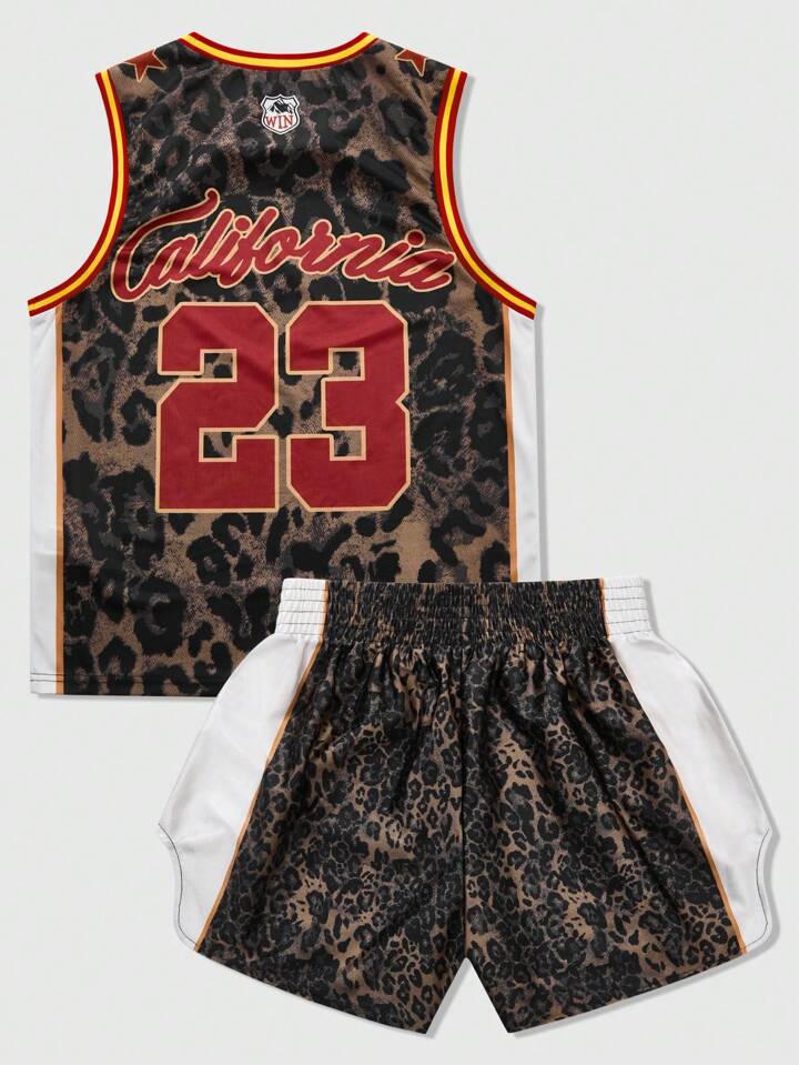 Prep Sporty 2pcs/Set Men's City Name Slogan Print Active Tank Top And Leopard Patterned Boxer Shorts Set