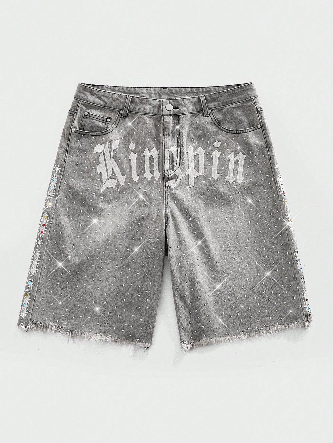 Street Life Spring/Summer Casual Graphic Casual Wide Leg Button Pocket Men'S Sparkling Diamond Denim Shorts