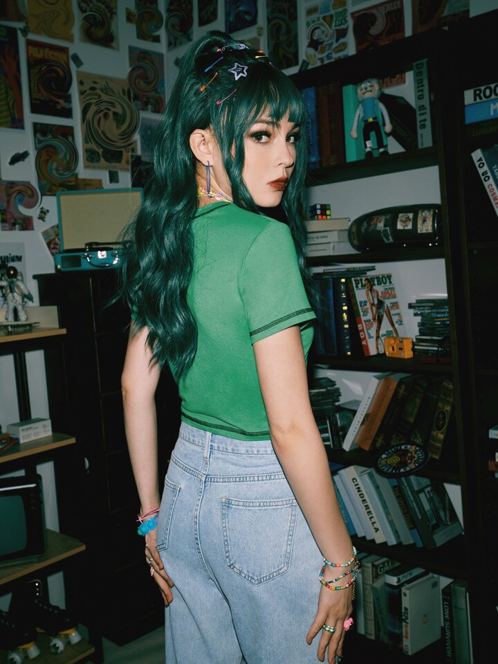 Street Life Stitching Trim Cartoon Graphic Crop Tee