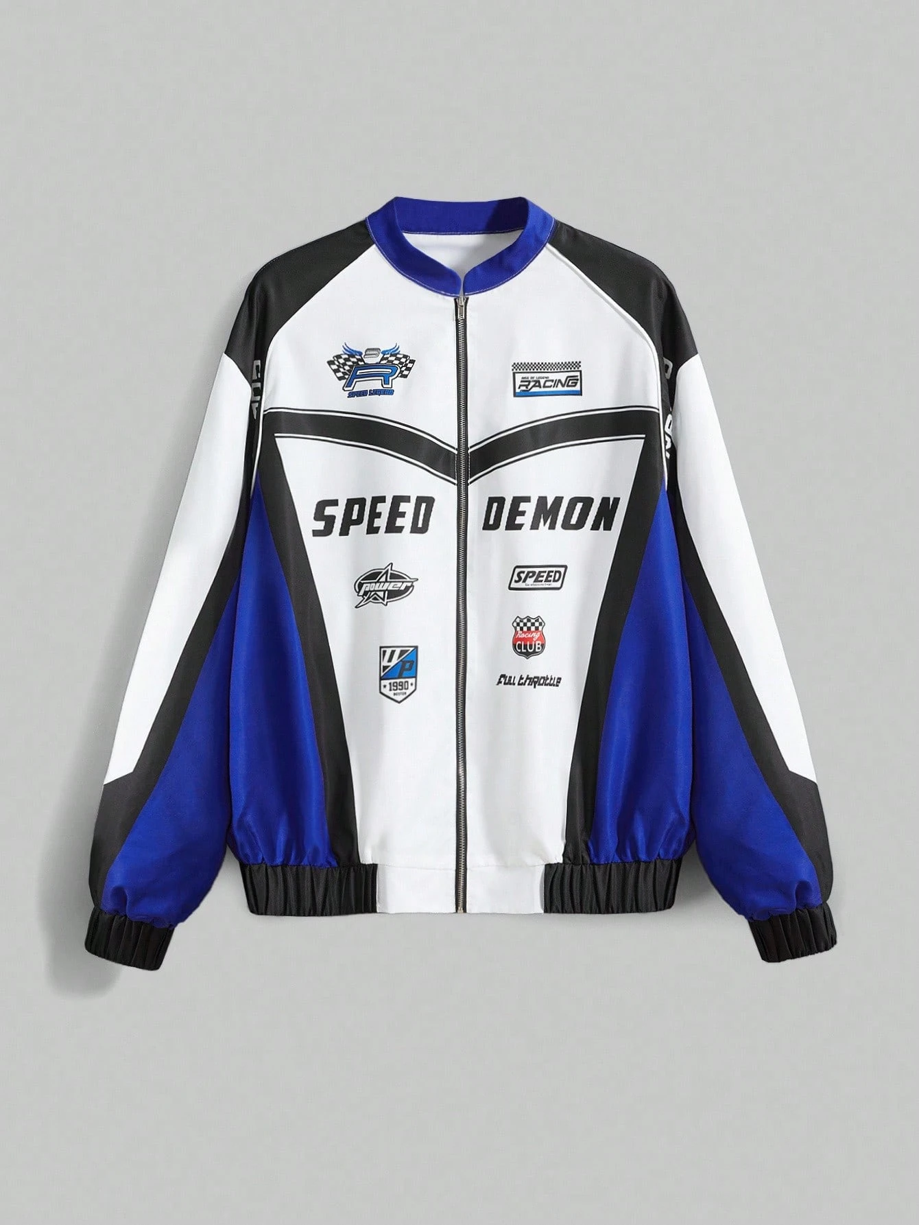 Street Life Street Style Sporty Racing Letter Print Contrast Color Drop Shoulder Bomber Jacket For Women