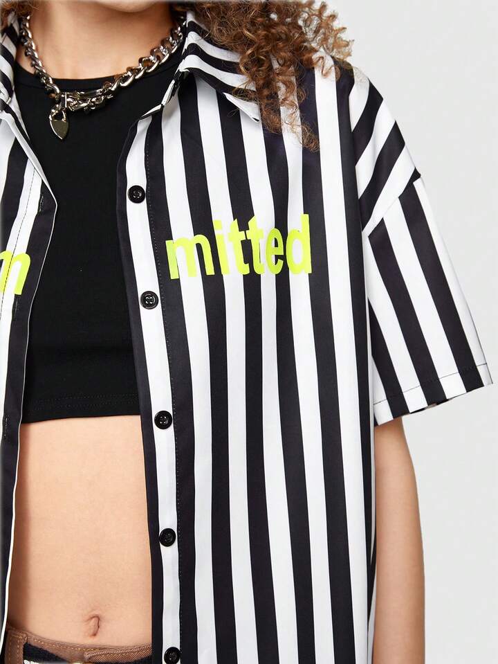 Street Life Striped & Letter Graphic Drop Shoulder Shirt