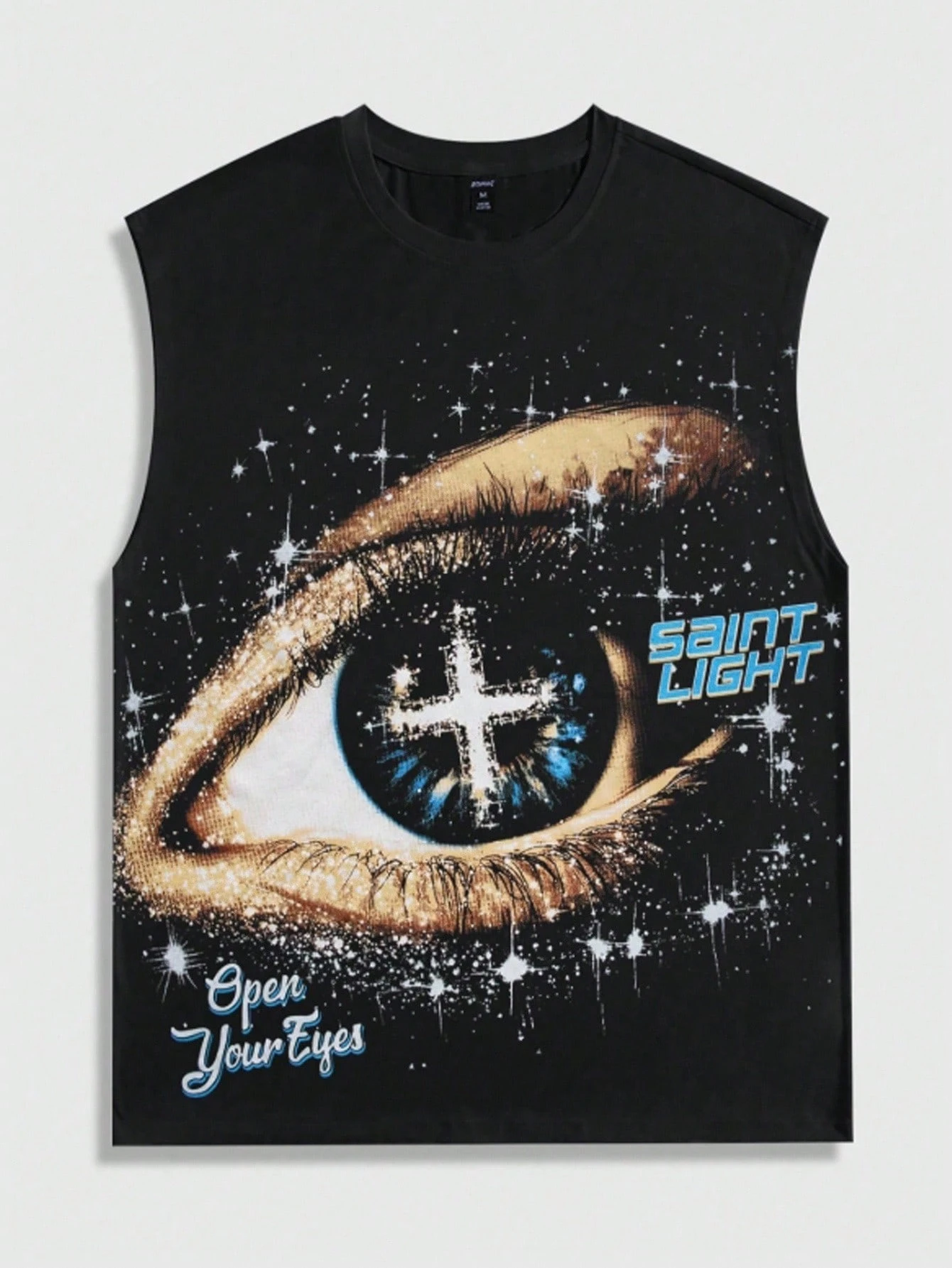 Street Life Teen Boy Casual Eye Print Sleeveless Tank Top, Summer