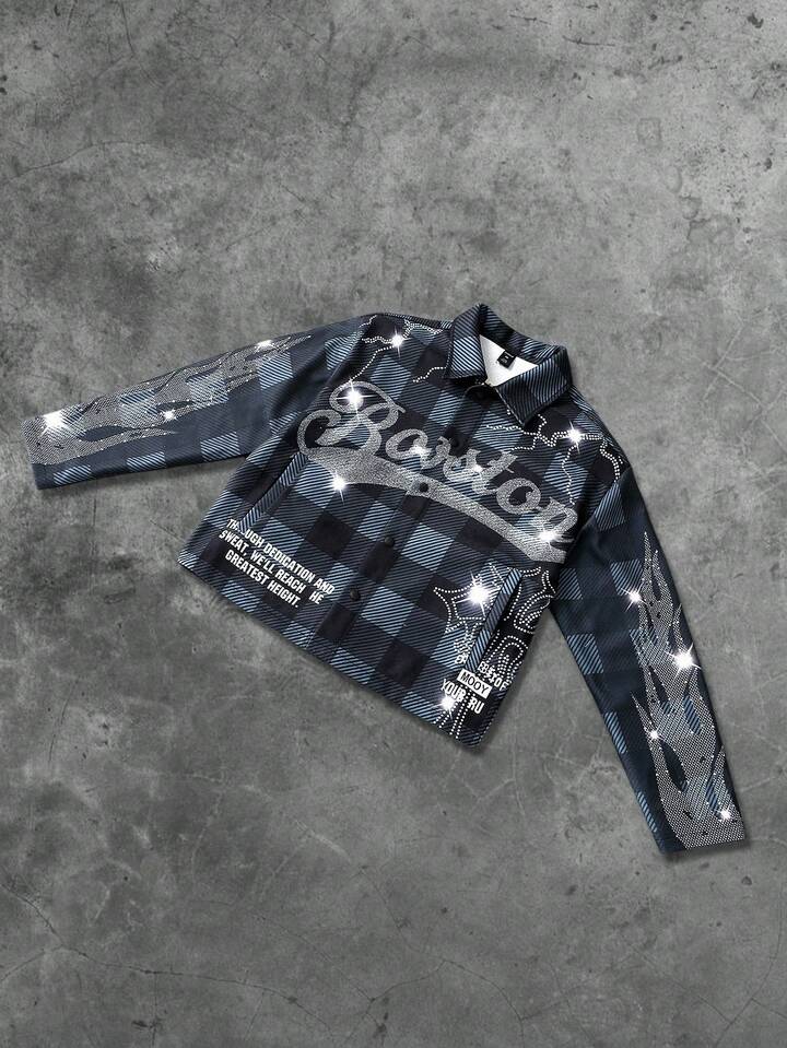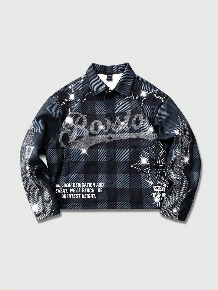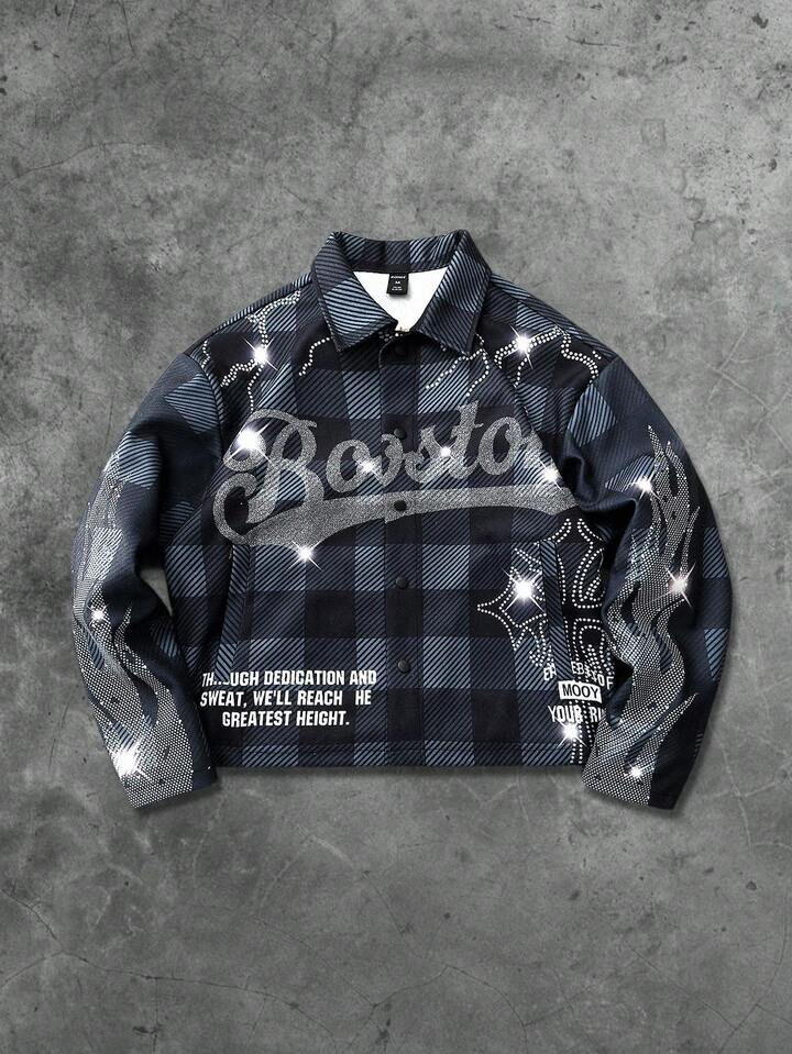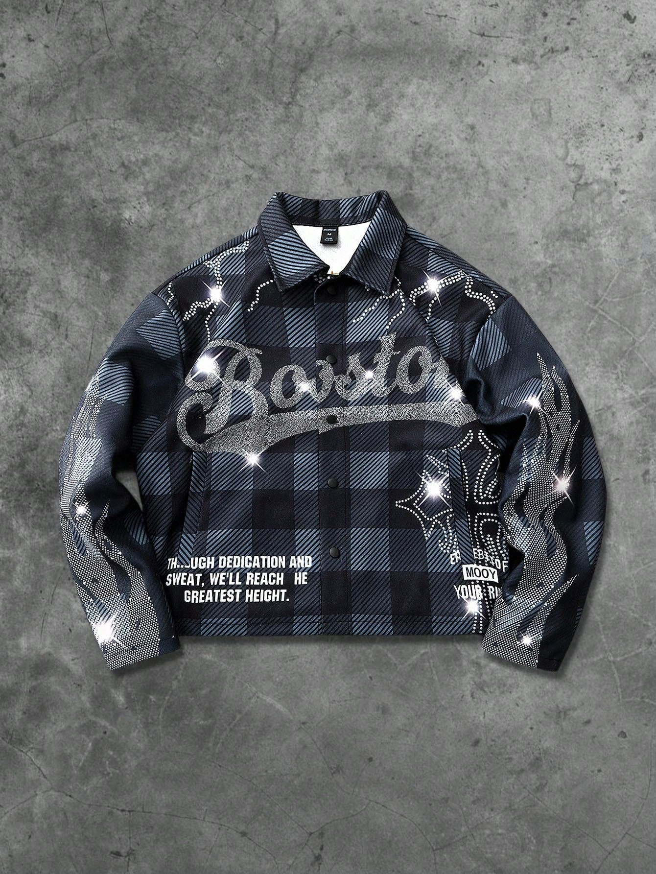 Street Life Unisex Plaid Cross Embellished Street Style Jacket, Autumn/Winter