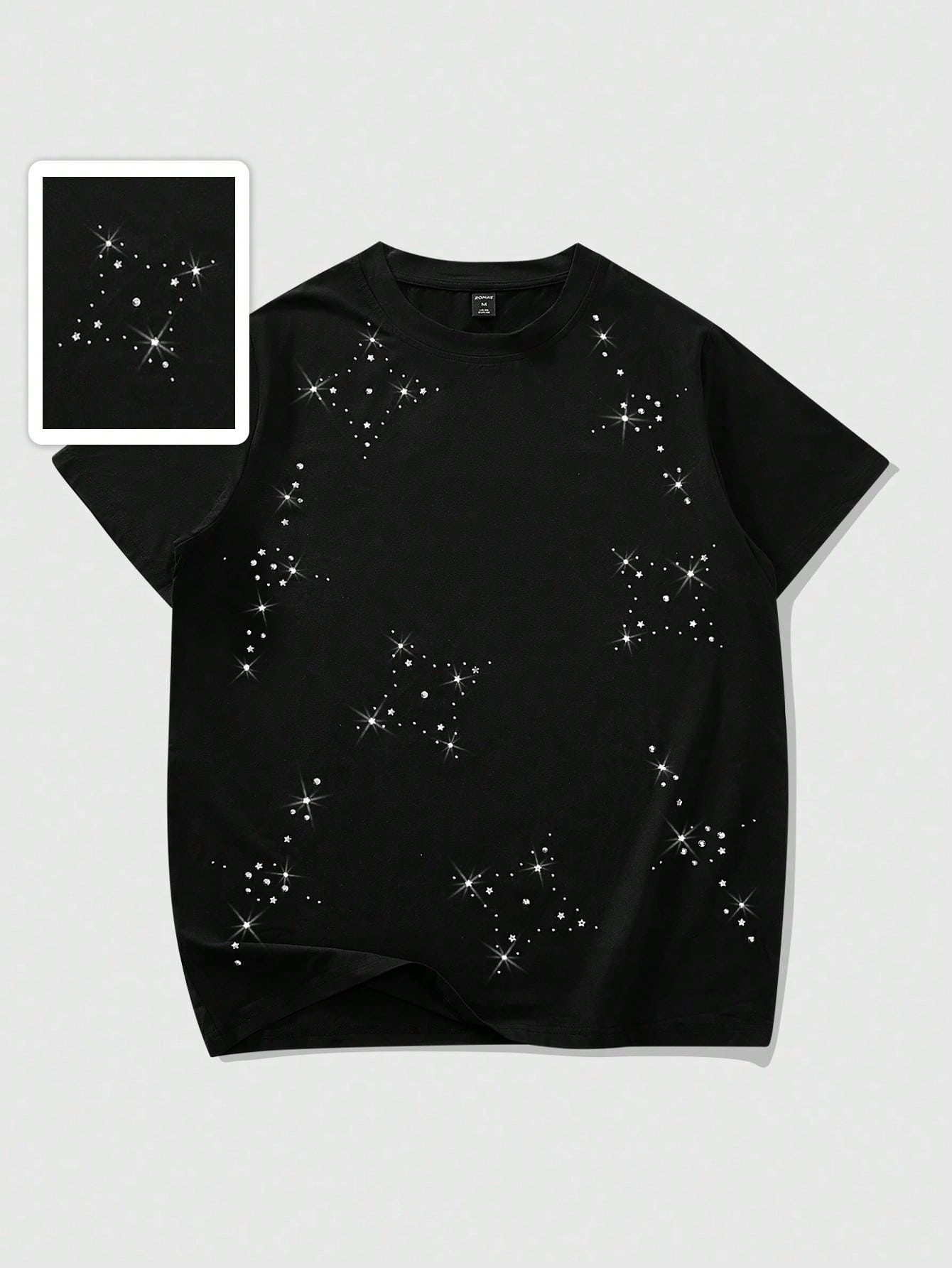 Street Life Unisex Short Sleeve T-Shirt With Stylish Rhinestone Star Graphic, Street Style American Design