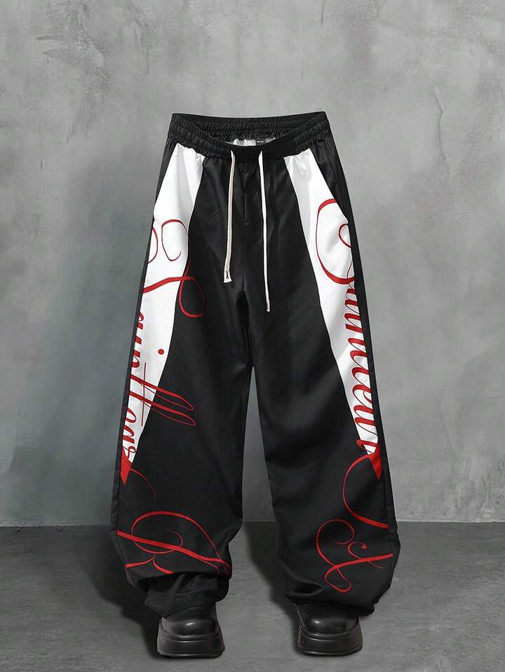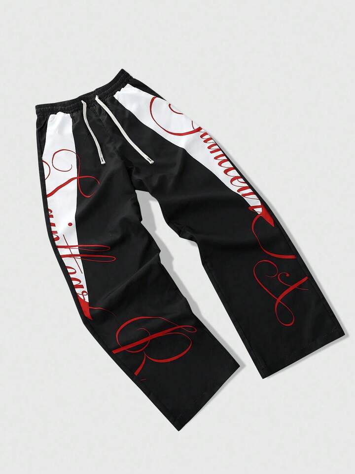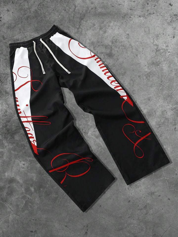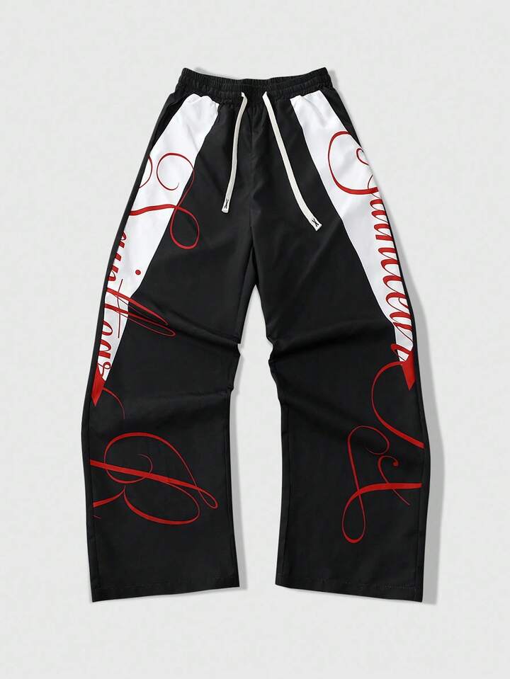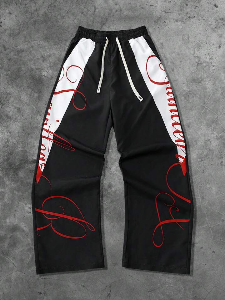 Street Life Unisex Straight Leg Woven Pants With American English Graphic Print, For Fall