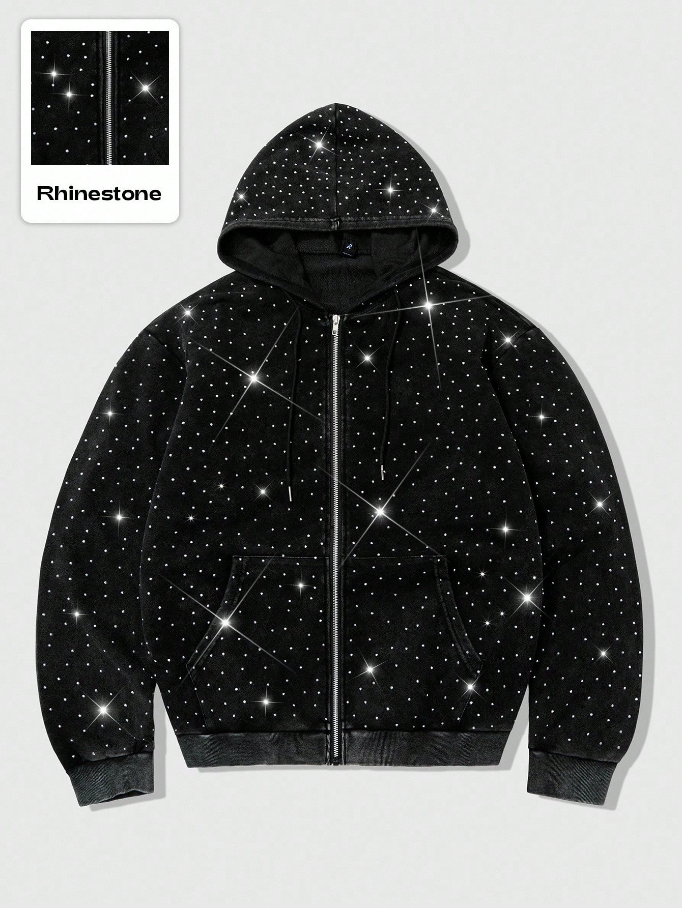 Street Life Unisex Street Style Embellished Rhinestone Print Zip-Up Hoodie Sweatshirt , Fall