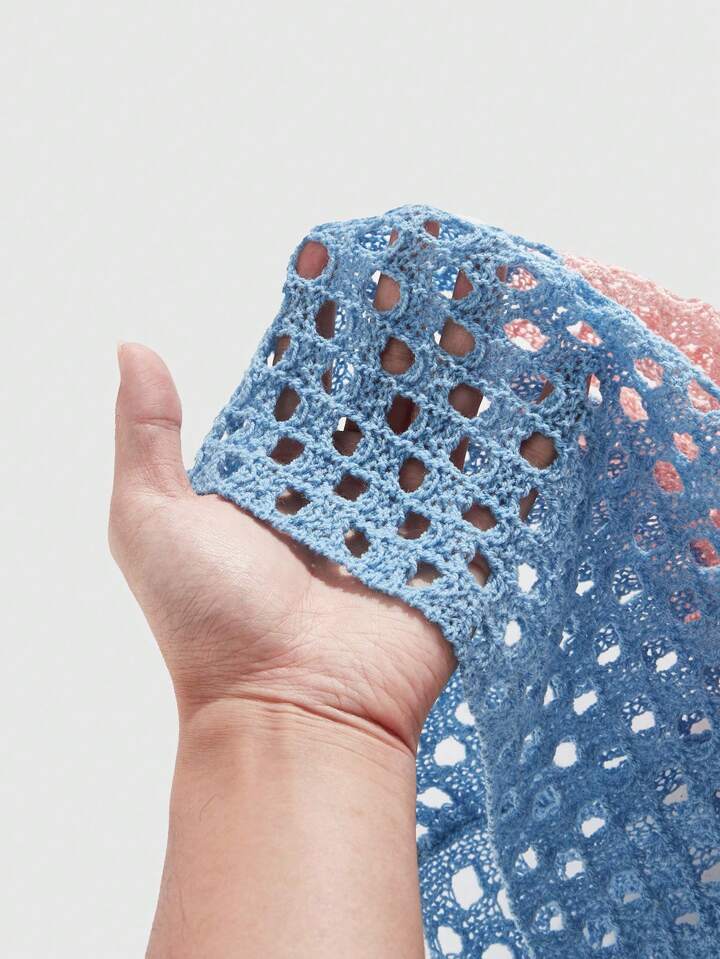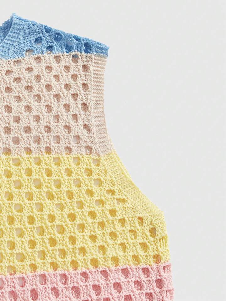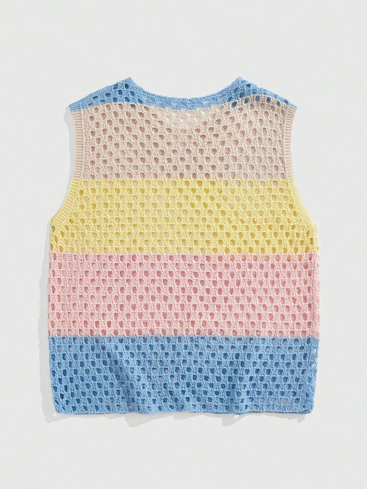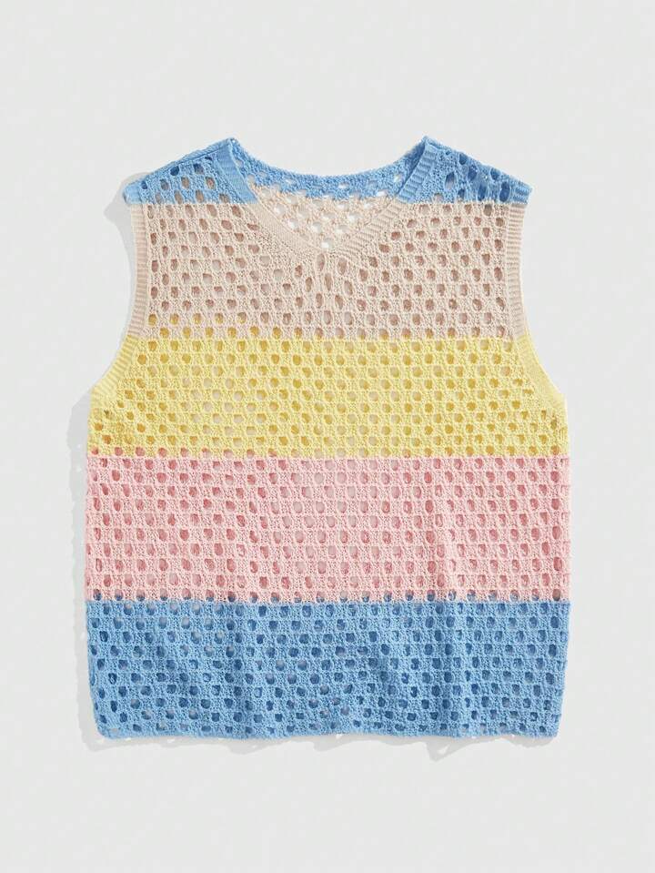 Street Life Vacation Men's Contrast V-Neck Sleeveless Hollow Casual Knitted Top, Rave