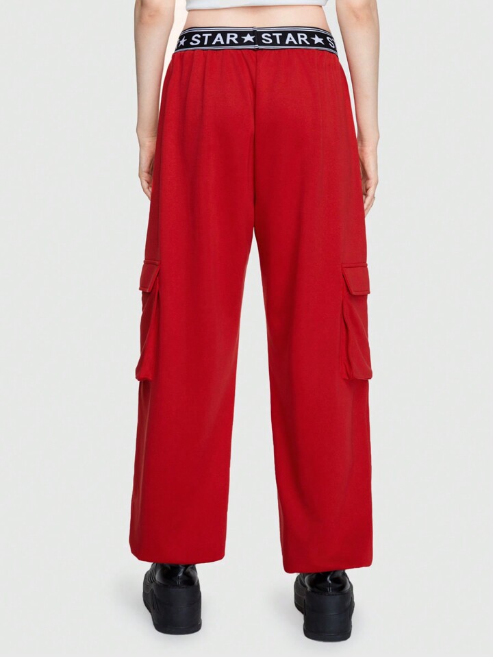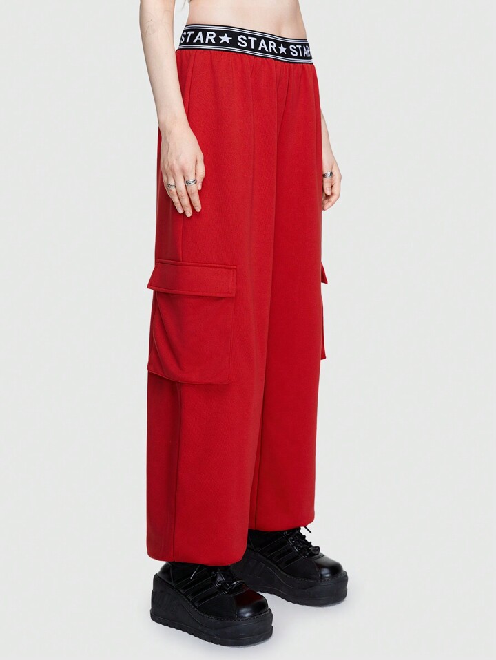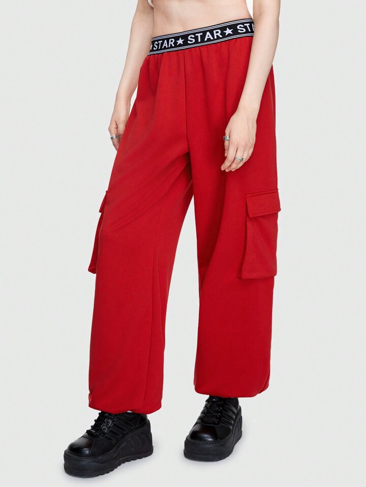 Street Life Women's Letter Print Webbing Pocket Cargo Sweatpants