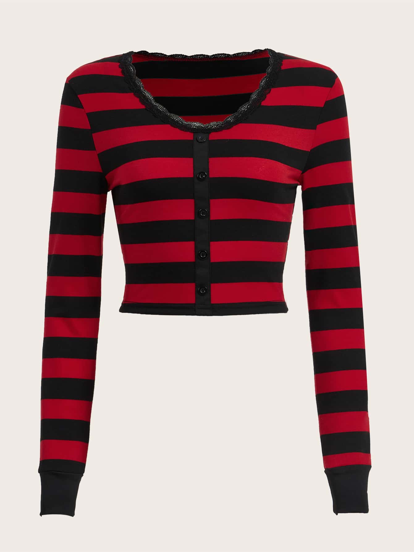 Striped Button Front Crop Tee
