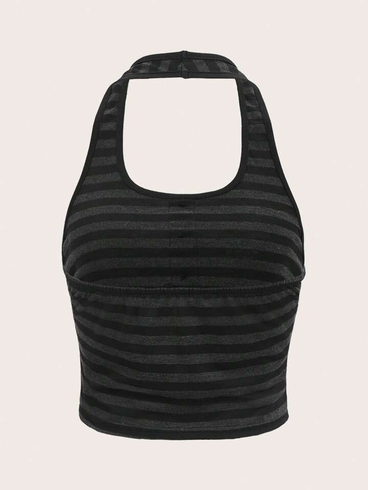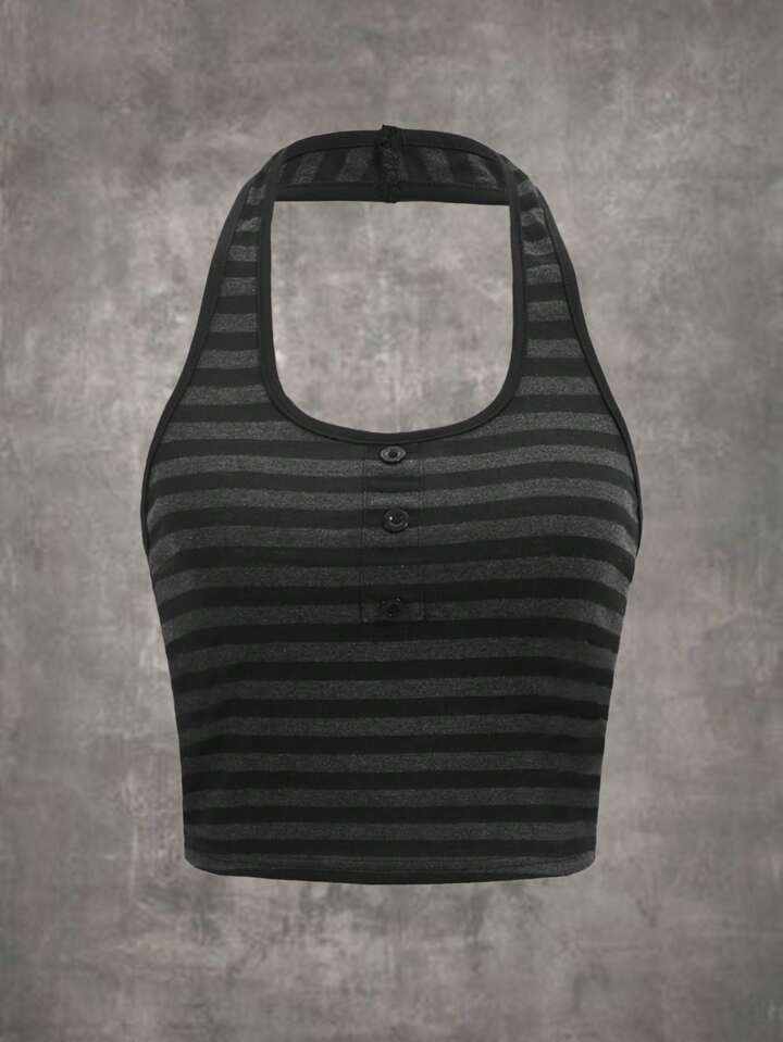 Striped Button Halter Top