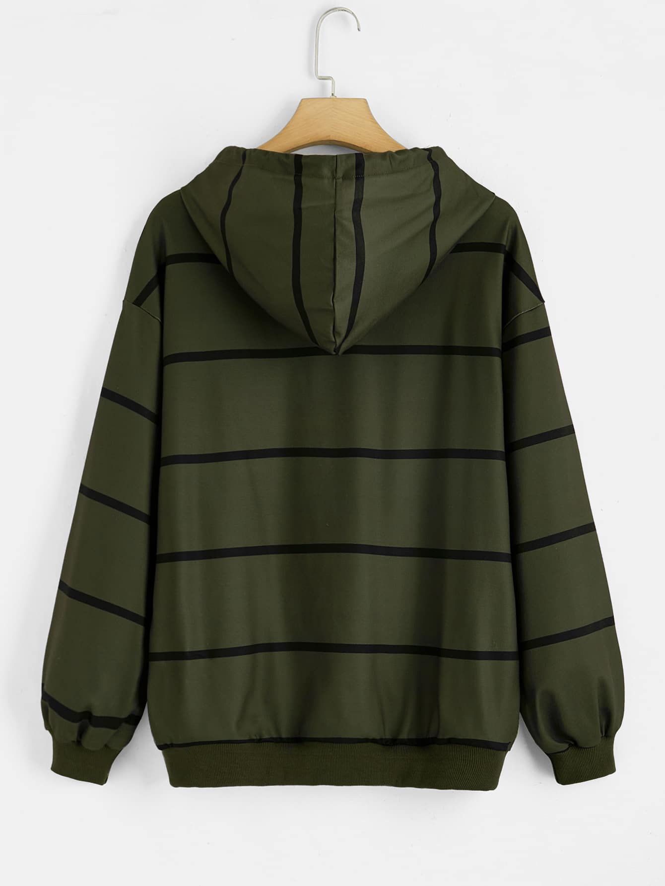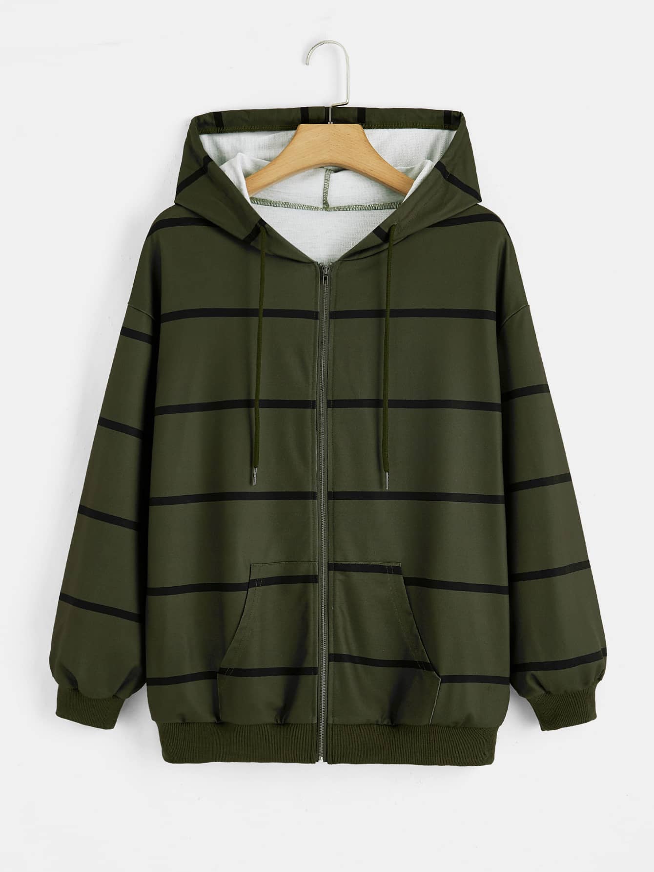 Striped Drop Shoulder Zip Up Drawstring Hoodie