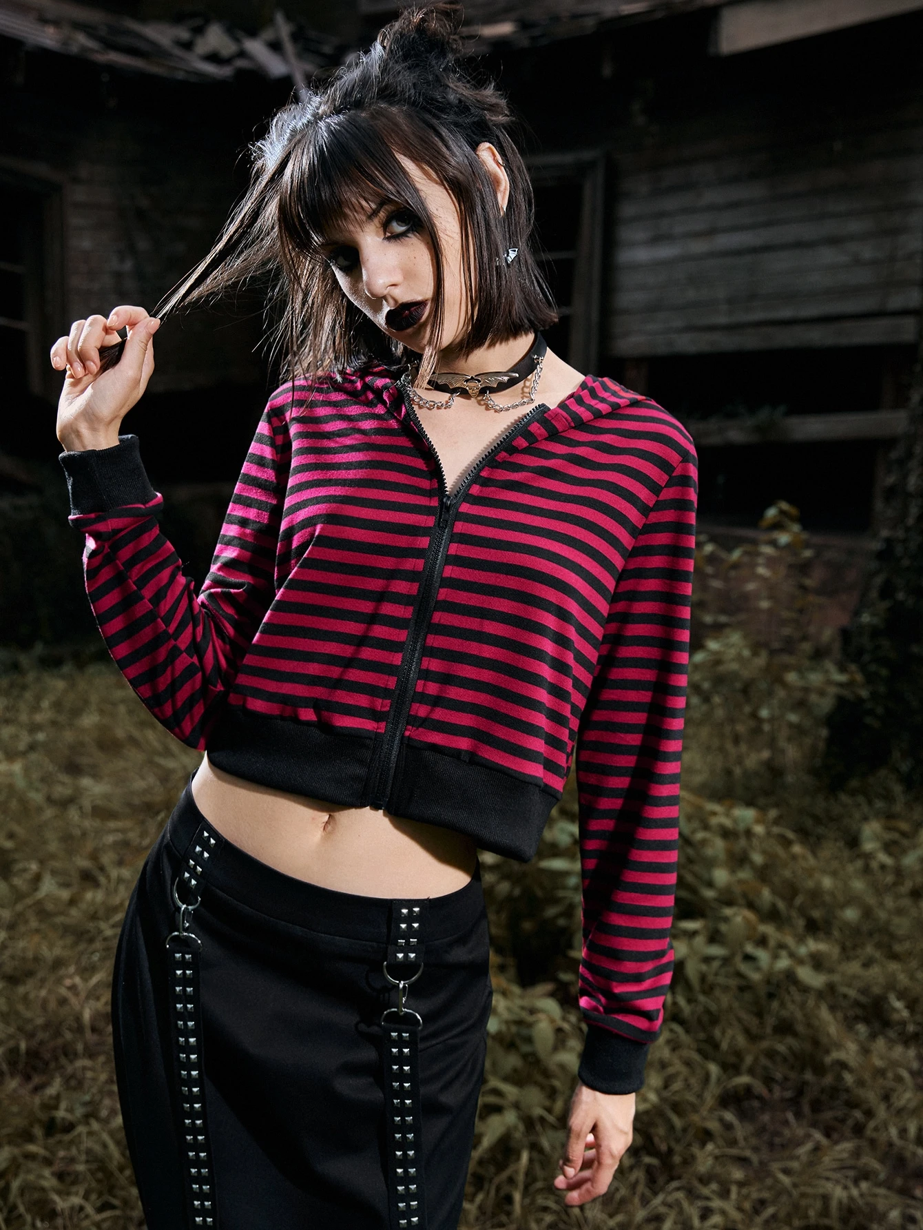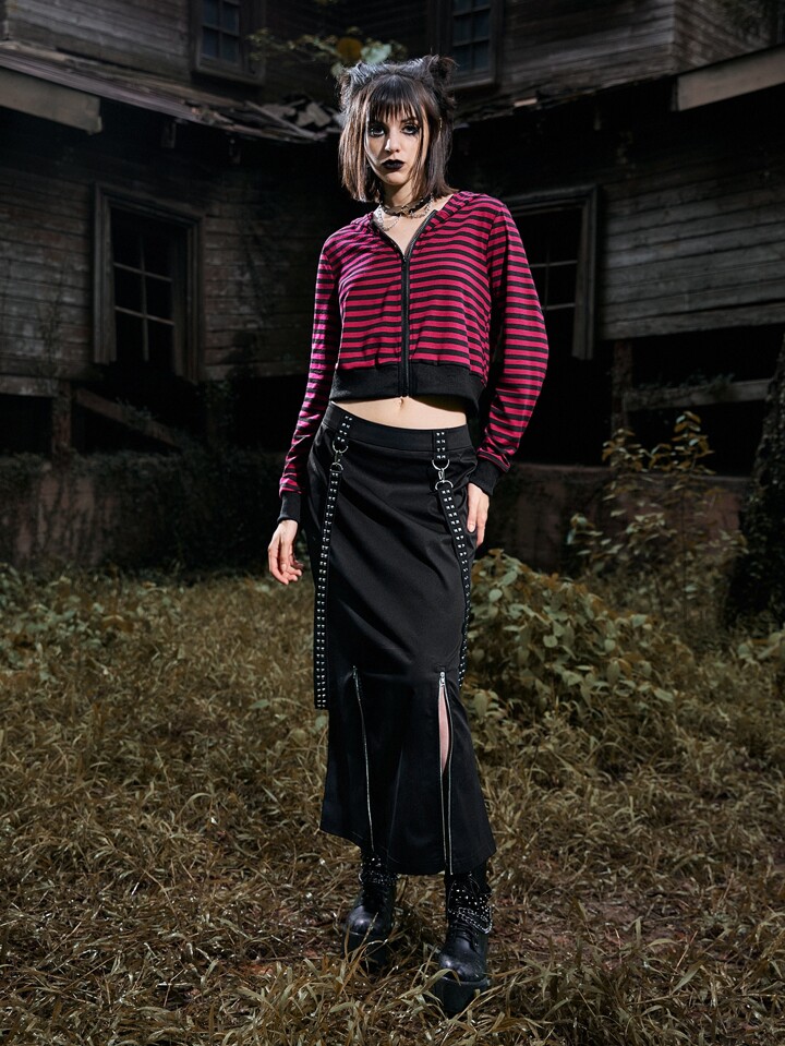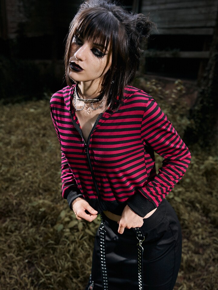 Striped Zip Up Crop Hoodie