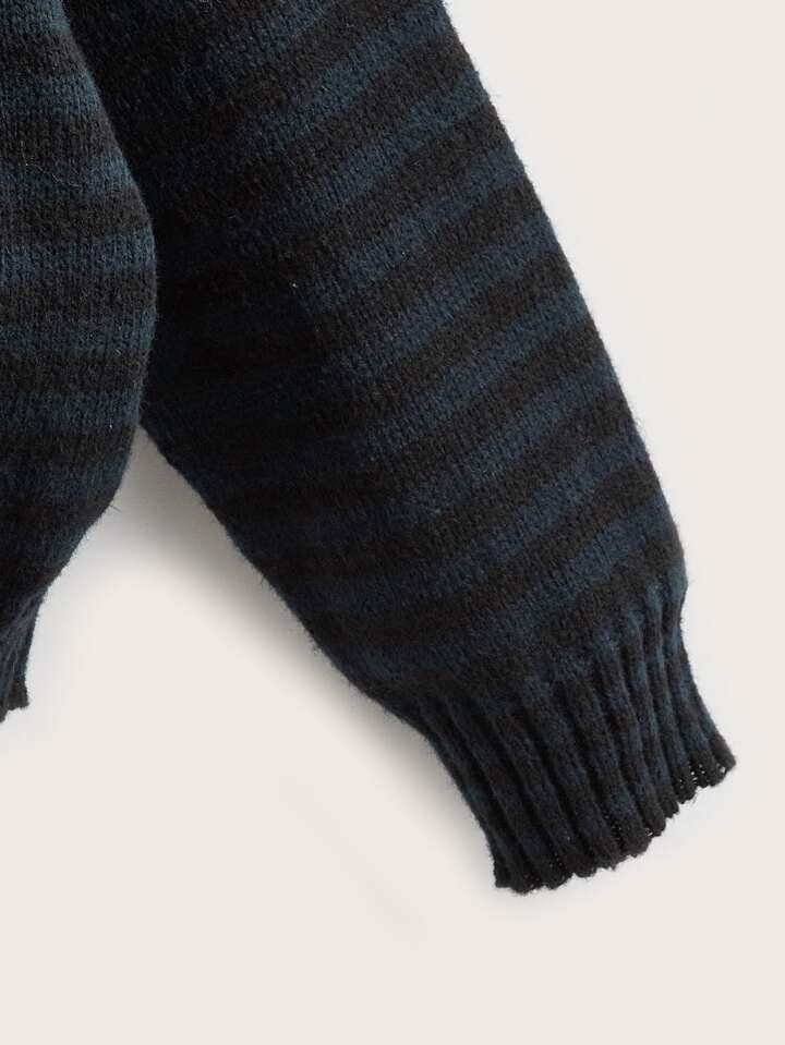 Striped Zip Up Drawstring Hooded Cardigan
