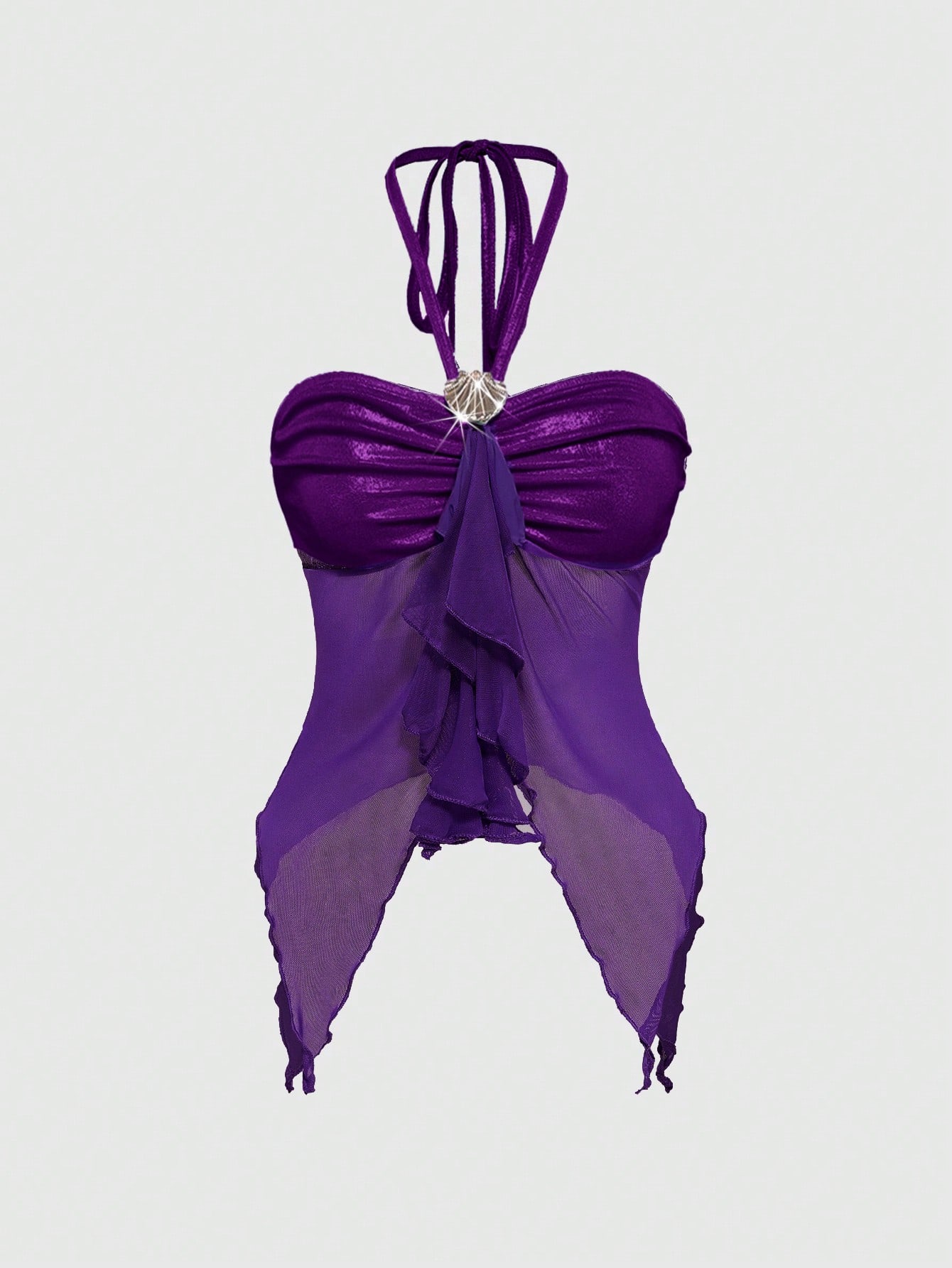 Fairycore Summer Asymmetrical Hem Seashell Decor Spaghetti Strap Camisole For Women