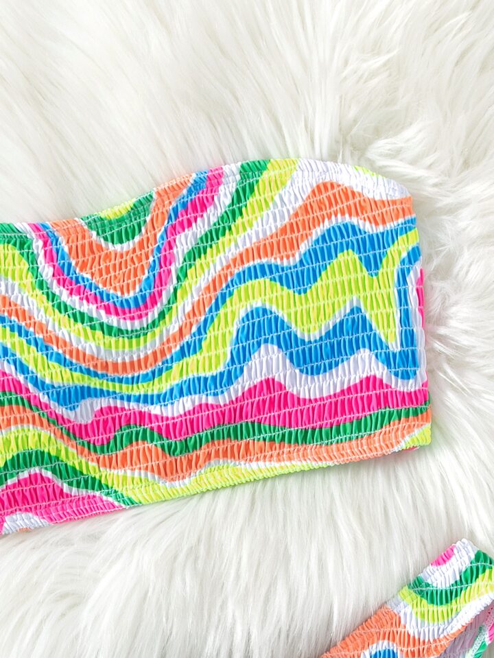 Summer Beach Allover Print Smocked Bandeau Bikini Set