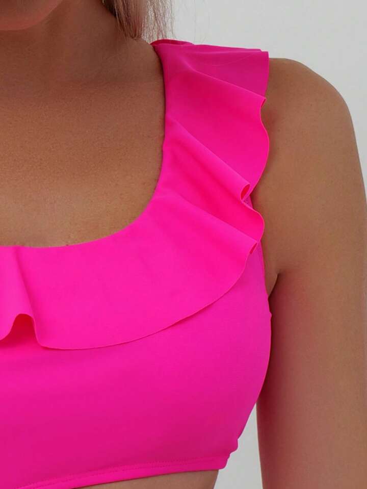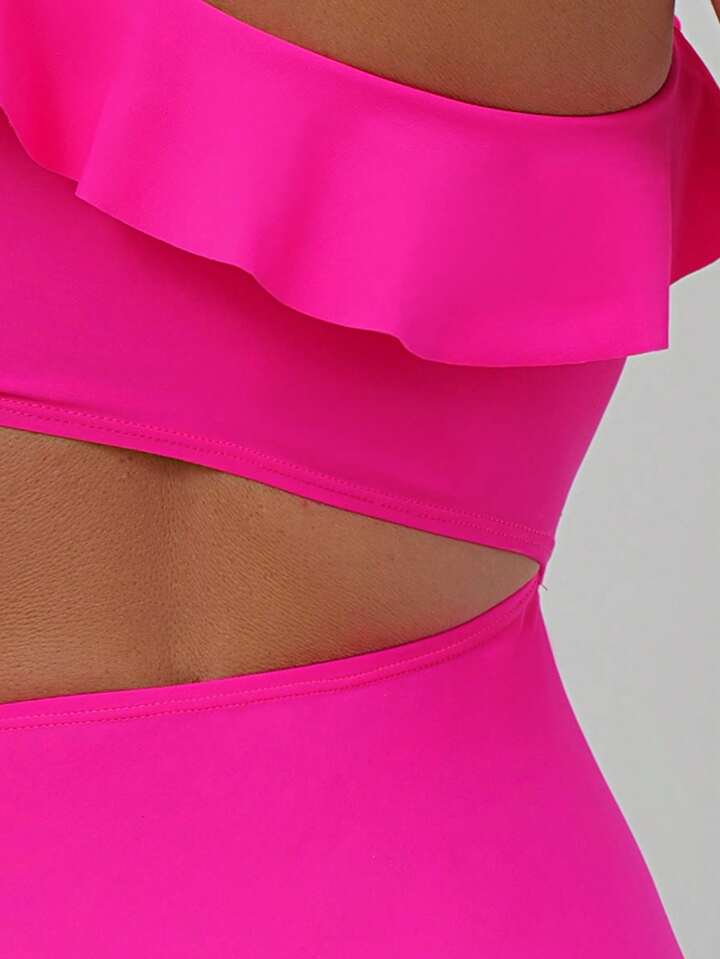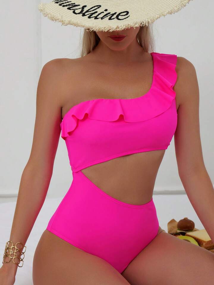 Summer Beach Cut Out Ruffle Trim One Shoulder One Piece Swimsuit