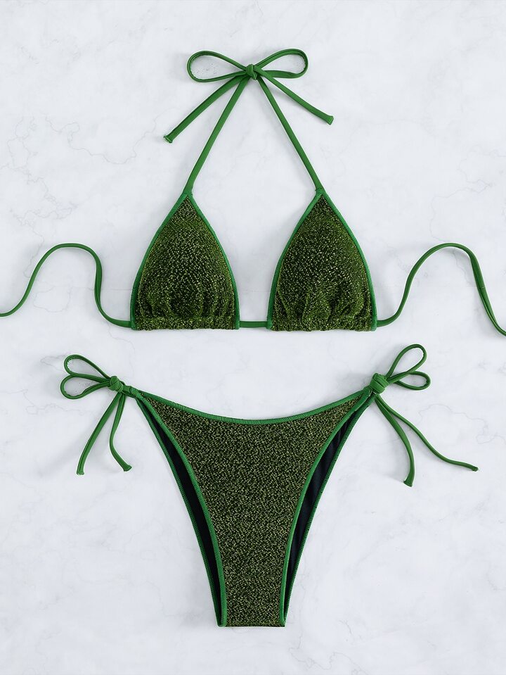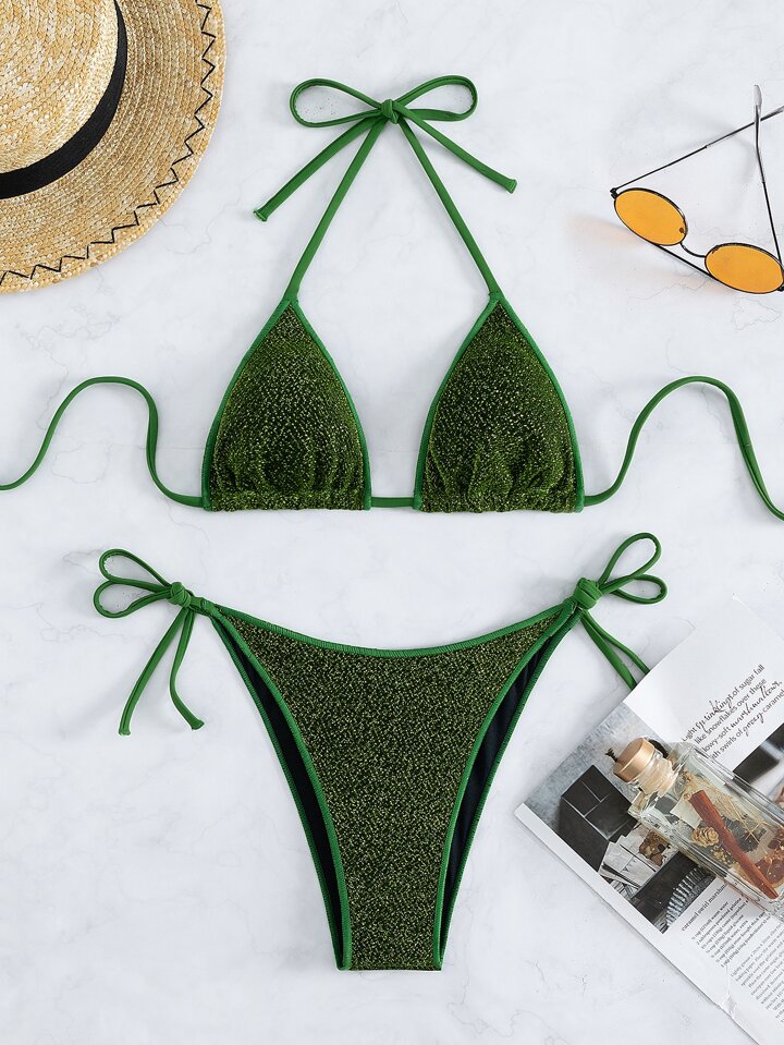 Summer Beach Glitter Halter Micro Triangle Bikini Set