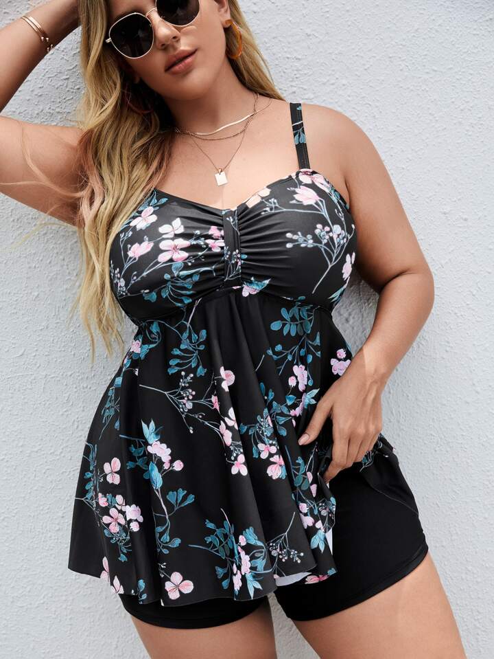 Summer Beach Plus Floral Print Swim Dress With Shorts