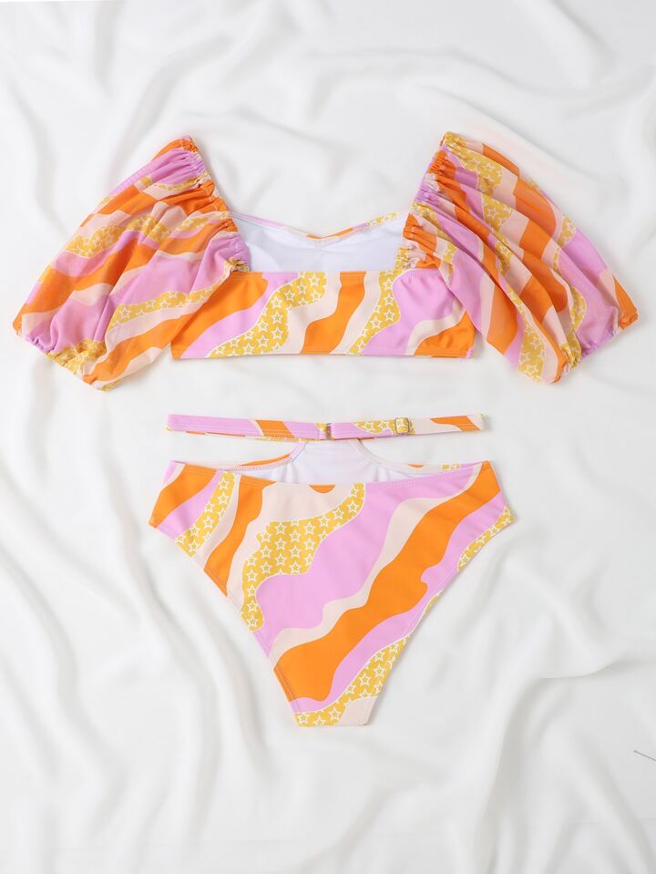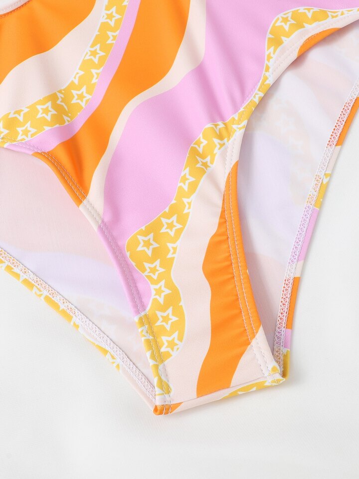 Summer Beach Star Print Color Block Cutout Waist Bikini Set, Vacation Bikini